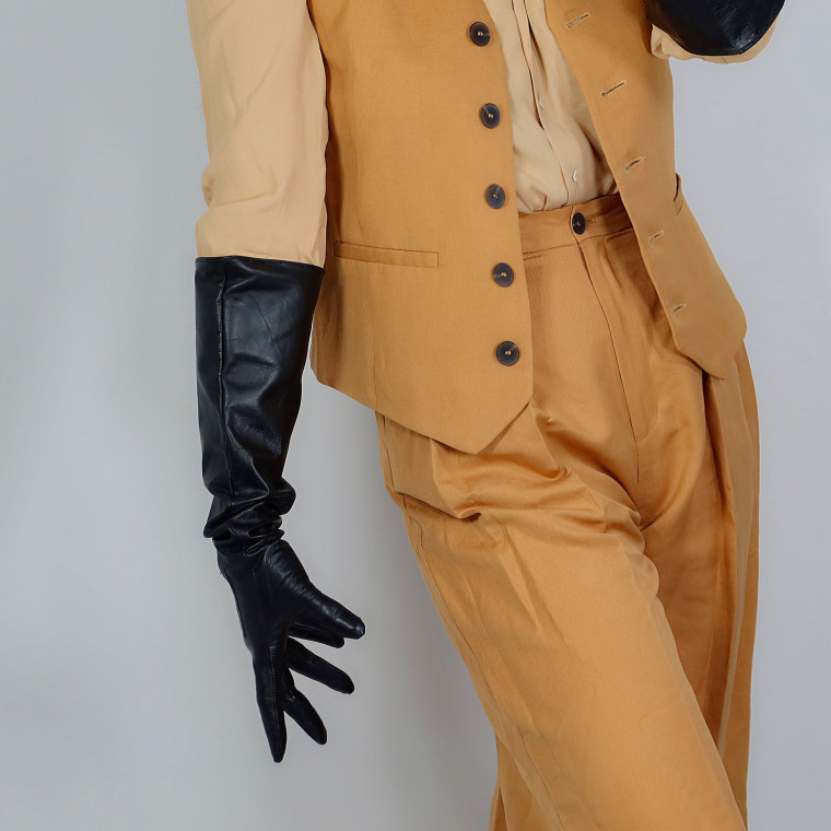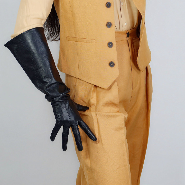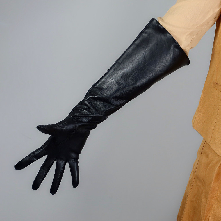 • REAL LEATHER TECH LONG GLOVES Unisex Black 50cm Wide Balloon Large PUFF SLEEVES LLDLLNT