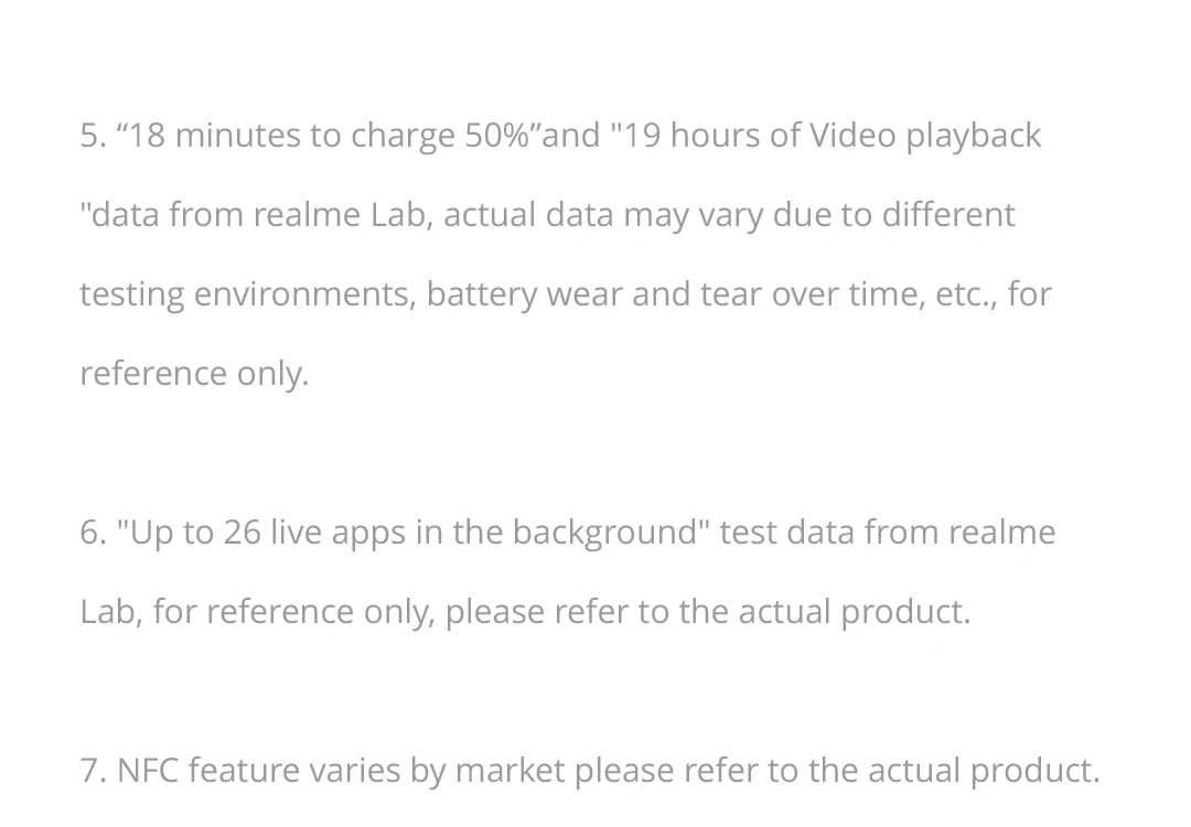 * Charging data is from realme Lab, the actual data is affected by the testing environment