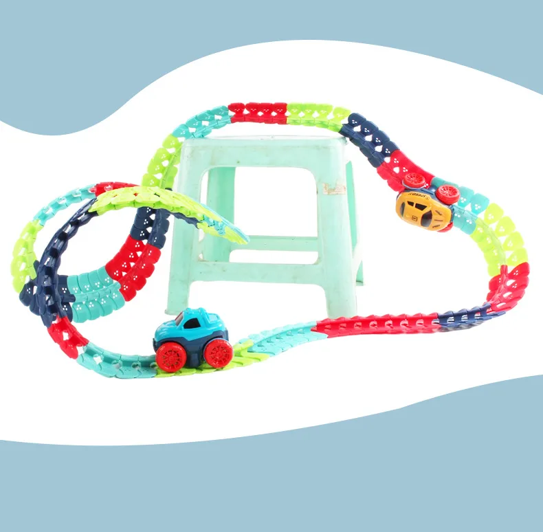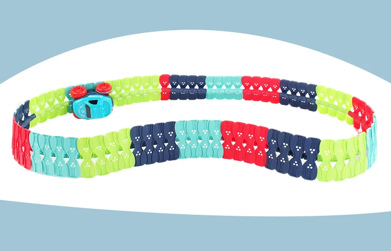 1.Endless Fun and Easy Storage: Practice your child's hands-on sills in play,give your kid age 3 and up hours of stimulating, creative, hands-on activity, and when they're done the track rolls up for easy storage that you can take with you anywhere.