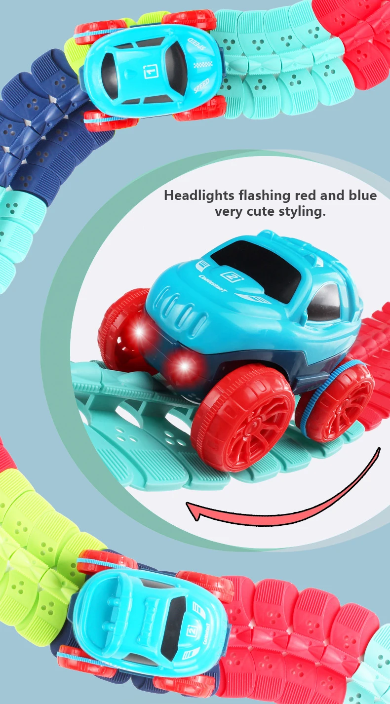 Kids Track Cars For Boys Flexible Track with LED Light-Up Race Car Set Anti-gravity Assembled Track Car Birthday Gifts for Kids