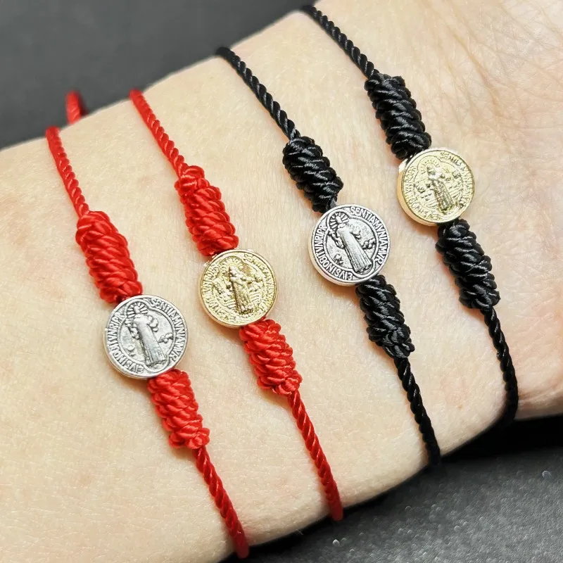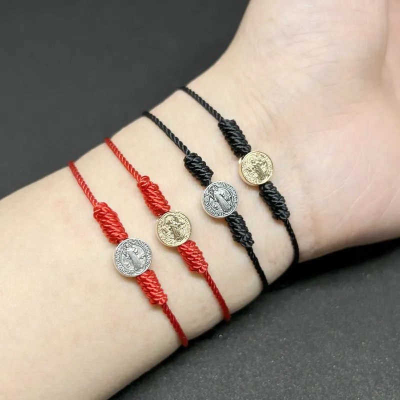 Red Black Catholic Religious Belief St. Benedict Cross Thread Knot Bracelet Adjustable Women Men Jewelry Gift