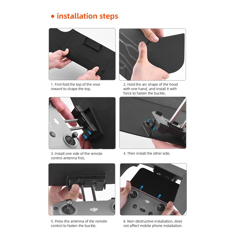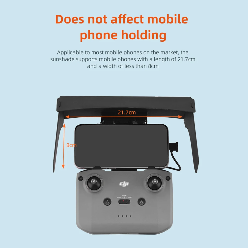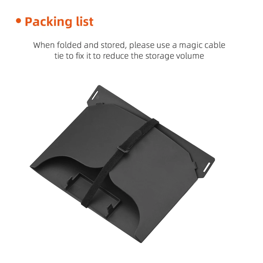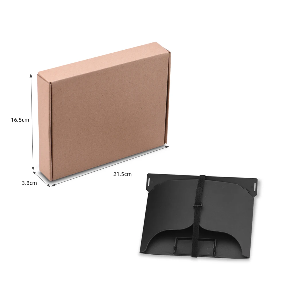 For DJI Mavic 3/Mini 2/Air 2/Air 2S/Mini 3 Pro RC-N1 Remote Controller Hood Sun Shade Mobile Phone Monitor Light Cover Drone Accessories Feature: 1. Made of high-quality materials, durable and wear-resistant; 2. Effectively prevent glare and interference under strong outdoor light, reduce eye discomfort, and improve flight safety; 3. The real machine opens the mold, which does not add extra burden to the flight; 4. Curved design on both sides, shading does not affect the use of controller buttons and data lines; 5. Easy to fold and store, easy to carry. Specification: Name: Remote control hood for MINI 3 Pro RC-N1 Applicable models: For Mavic 3/Mini 2/Air 2/Air 2S/Mini 3 Pro RC-N1 (without screen) Main material: plastic Color: black Net weight: 91.6g Gross weight: 154.8g Product size: 22*15.5*10.2cm (unfolded), 19*15.5cm (folded) Packing size: 21.5*16.5*3.8cm Packing: boxed Note: The delivery does not include remote control, mobile phone, cable and other accessories. Please be careful when removing the hood, do not force the hood, otherwise the remote control antenna will be damaged. Due to the different monitor and light effect, the actual color of the item might be slightly different from the color showed on the pictures. Thank you! Please allow 1-2cm measuring deviation due to manual measurement. 1 x Hood