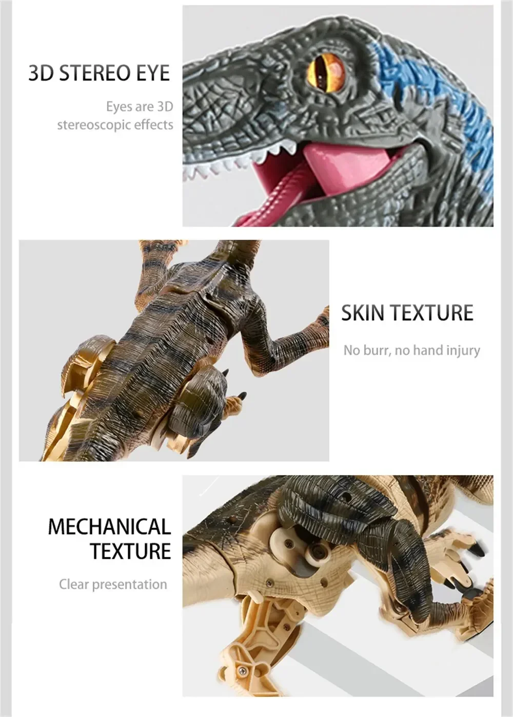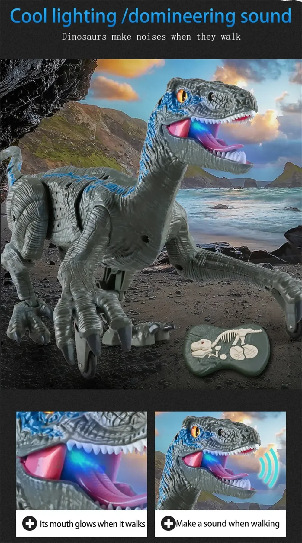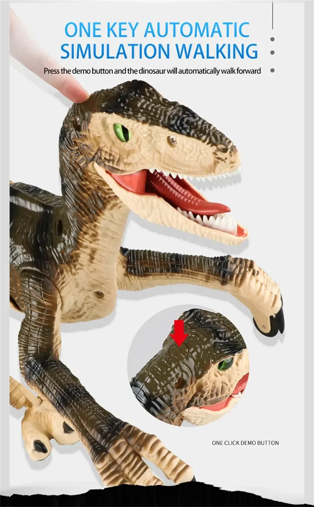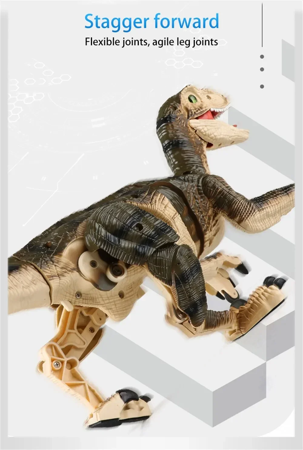【Super Value Realistic Walking RC Dinosaur Toy for Kids 】 This realistic dinosaur toy is able to walk flexibly indoor and outdoor, use the remote controller to make it action, there will be simulated sound out of it, which makes you feel you're at Jurassic Journey!