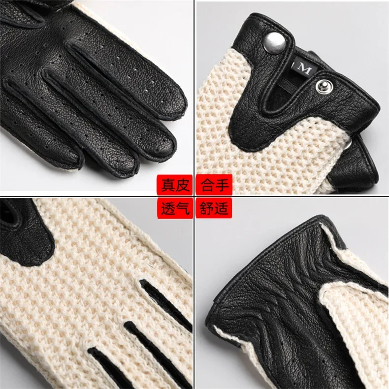 Choose Options Quick view Summer Driving Leather Gloves Women's Thin Sheepskin Unlined Fashionable Hollowed Out All Finger Motorcycle Riding Gloves $2,735.59 1. The gloves are made of natural animal 100% genuine leather material, which is soft, delicate, sturdy, and wear-resistant.2. Single layer thin leather with fashionable hollow out design, suitable...