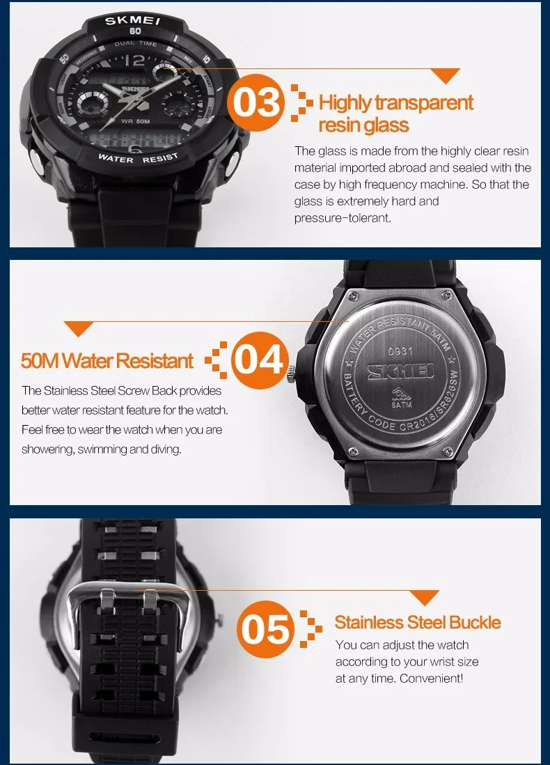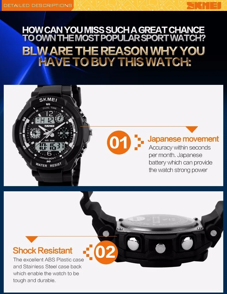 • S-Shock Mens Military Watch For Men Sport Watch SKMEI Luxury Brand Analog Quartz And LED Digital Outdoor Waterproof Watches