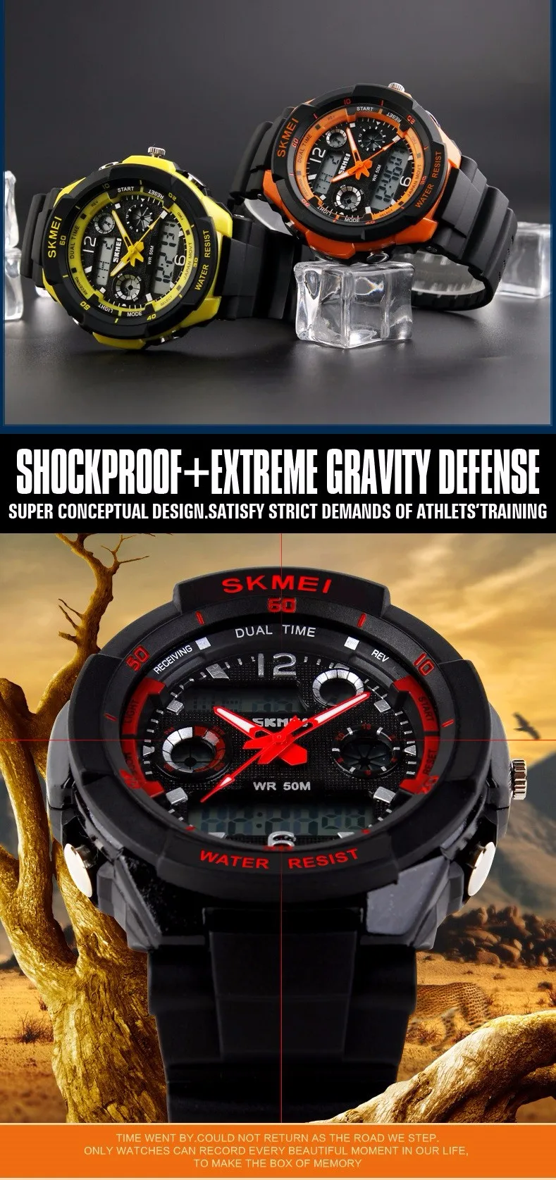 S-Shock Mens Military Watch For Men Sport Watch SKMEI Luxury Brand Analog Quartz And LED Digital Outdoor Waterproof Watches