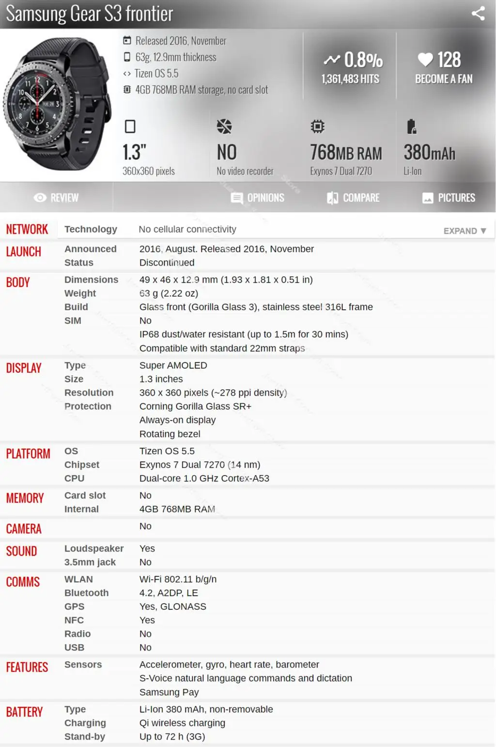 • SAMSUNG Gear S3 Frontier/Classic Smartwatch 46MM Bluetooth/Lte Refurbished
