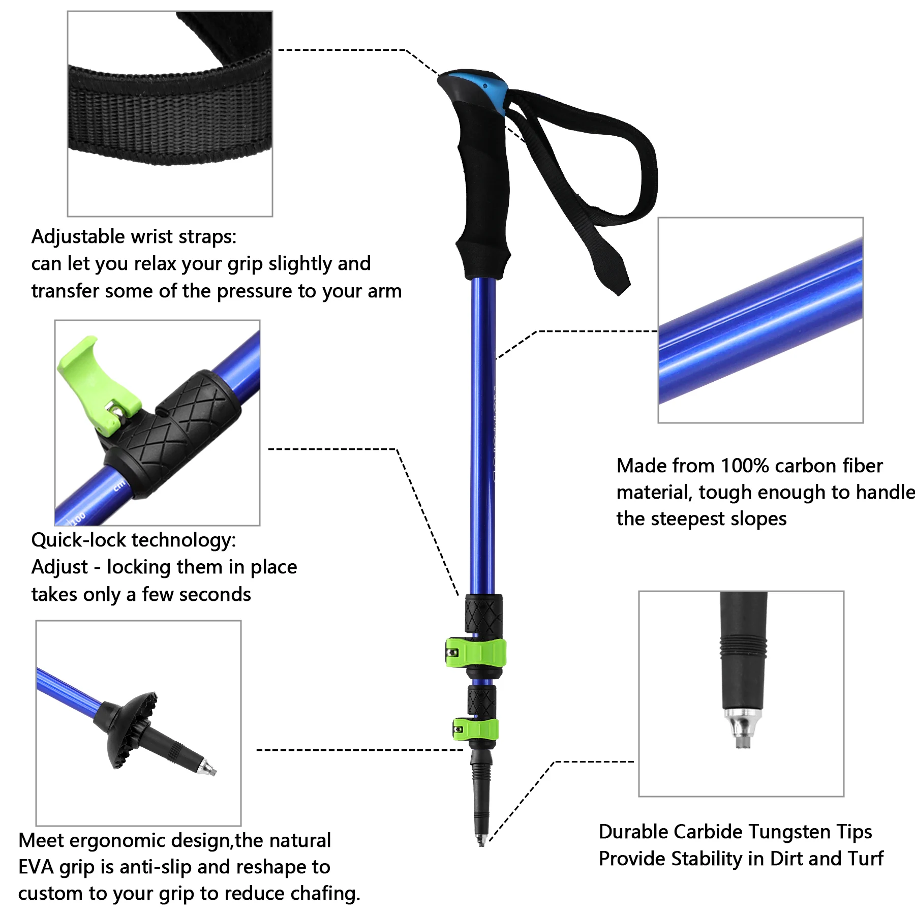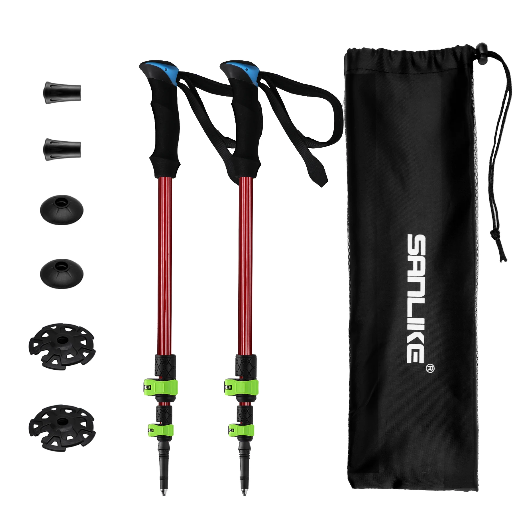 SANLIKE Trekking Poles Non-slip Crutch Three-section Adjustable Carbon 2pcs Fiber Trekking Pole Walking Pole Mountaineerin
