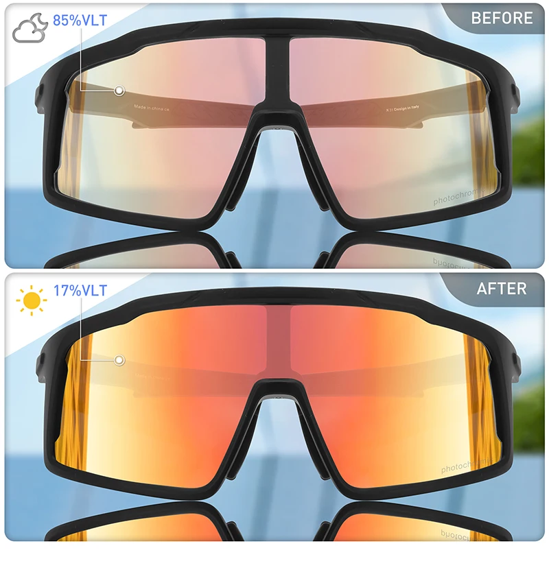 RED Photochromic 4: Colors Sunglasses+Clear lens+Balck Polarized lens+RED photochromic lens+cloth& bag+EVA box+Myopia frame;