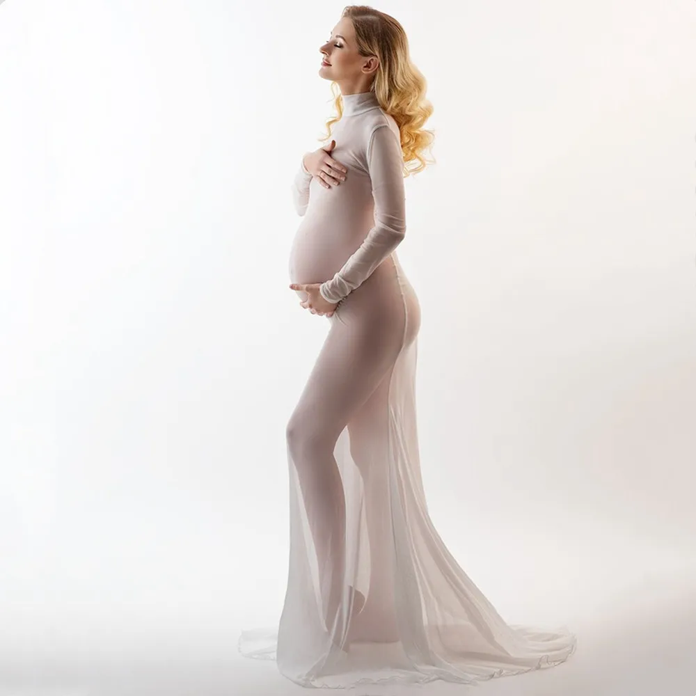 Choose Options Quick view High Neck Stretchy Mesh Maternity Photography Tulle Dress Full Sleeve See Through Pregnancy Mesh Maxi Dress For Photoshoot $6,296.48 - $6,428.09