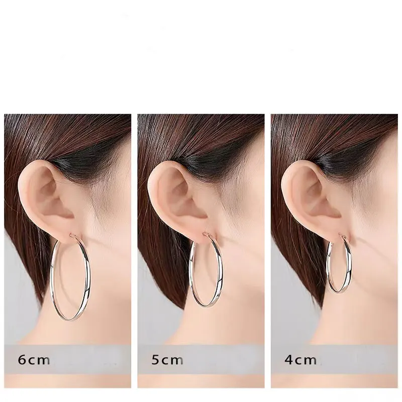 Senlissi - New Rose 585 Plated 925 Sterling Silver Women's Hoop Earrings 3.0mm Fashion Earring 18K Gold Cерьги Kольца 30 40 50 60 70MM