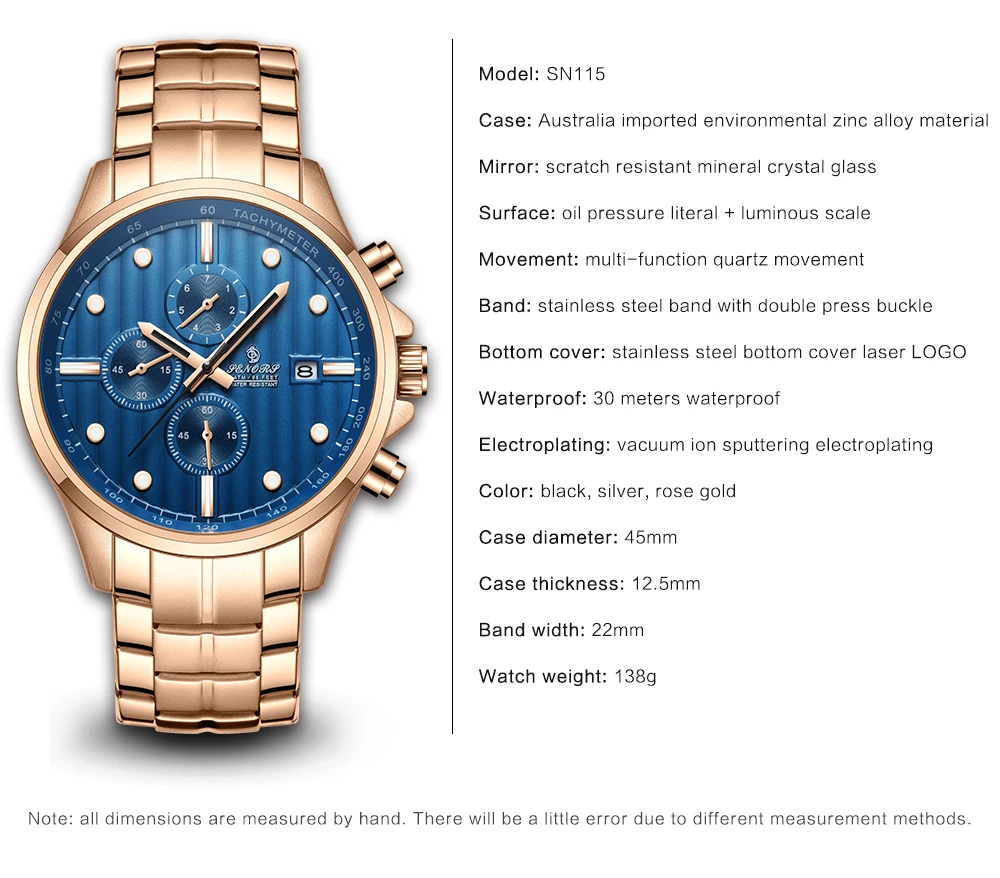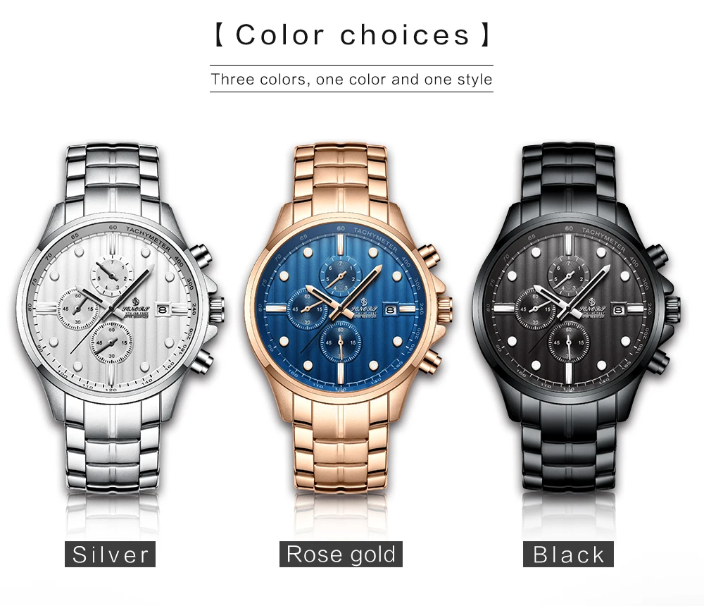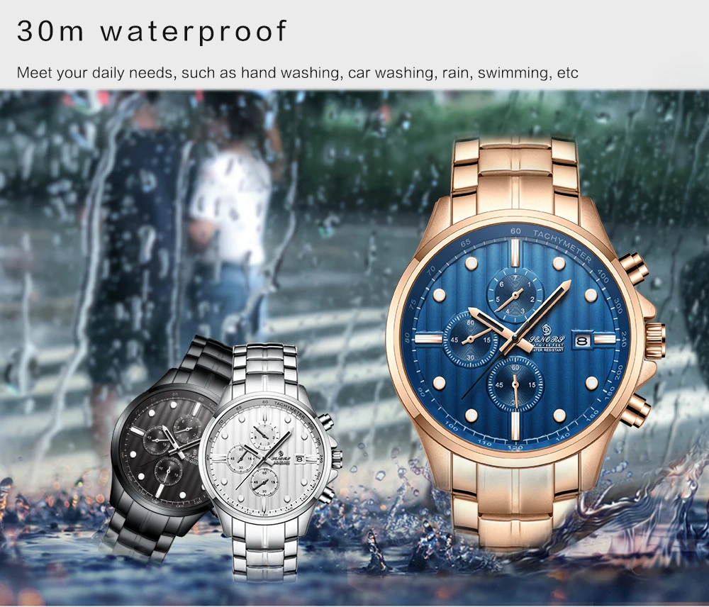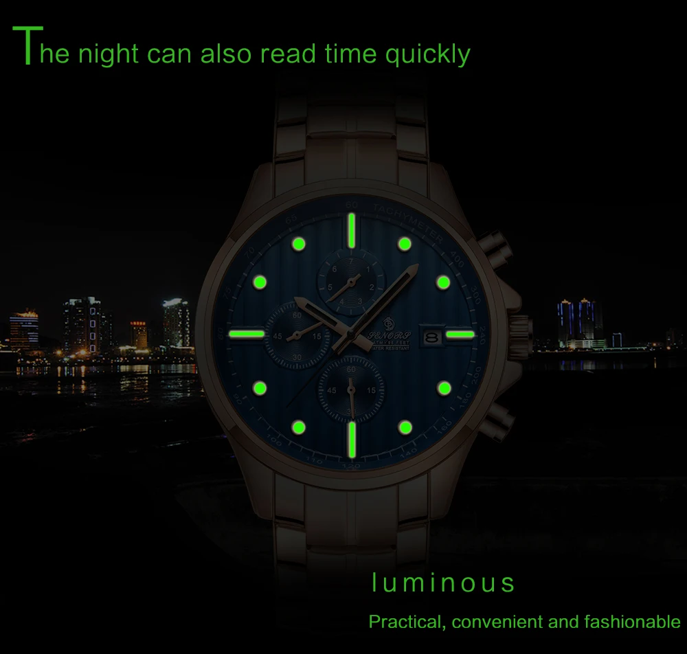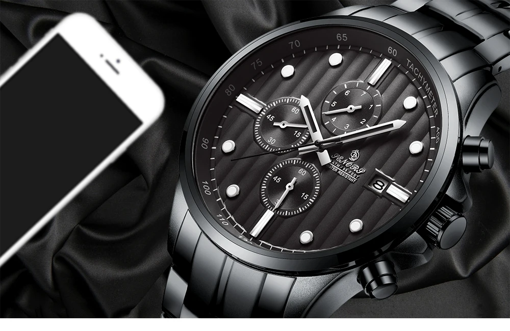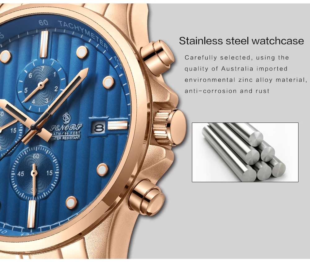 SENORS SN115 Men`s Watch Automatic Date Chronograph Quartz Watches Men Relogio Masculino Diver Watches Men 3ATM Clock