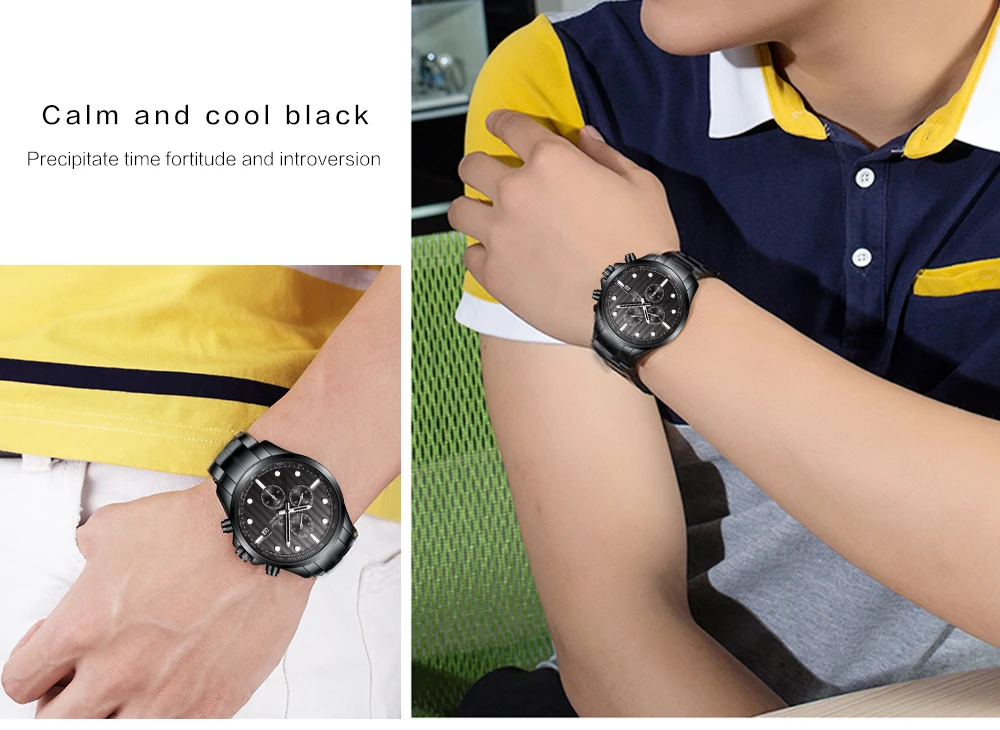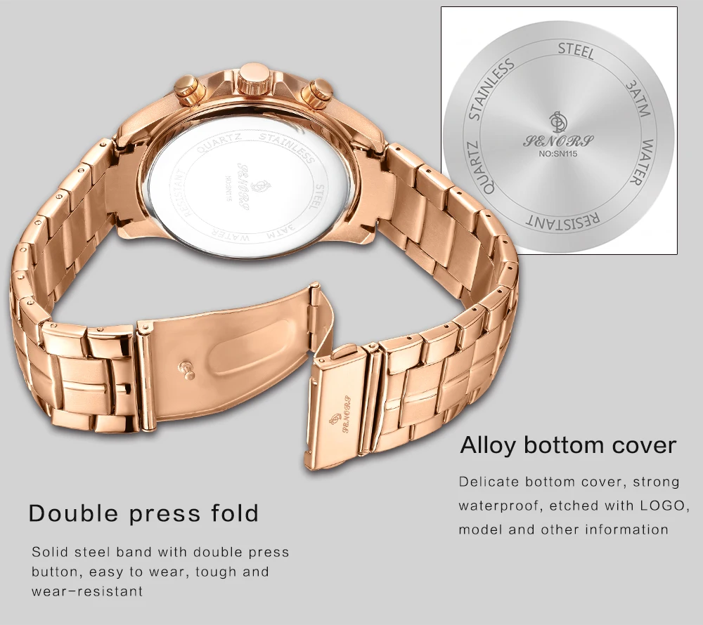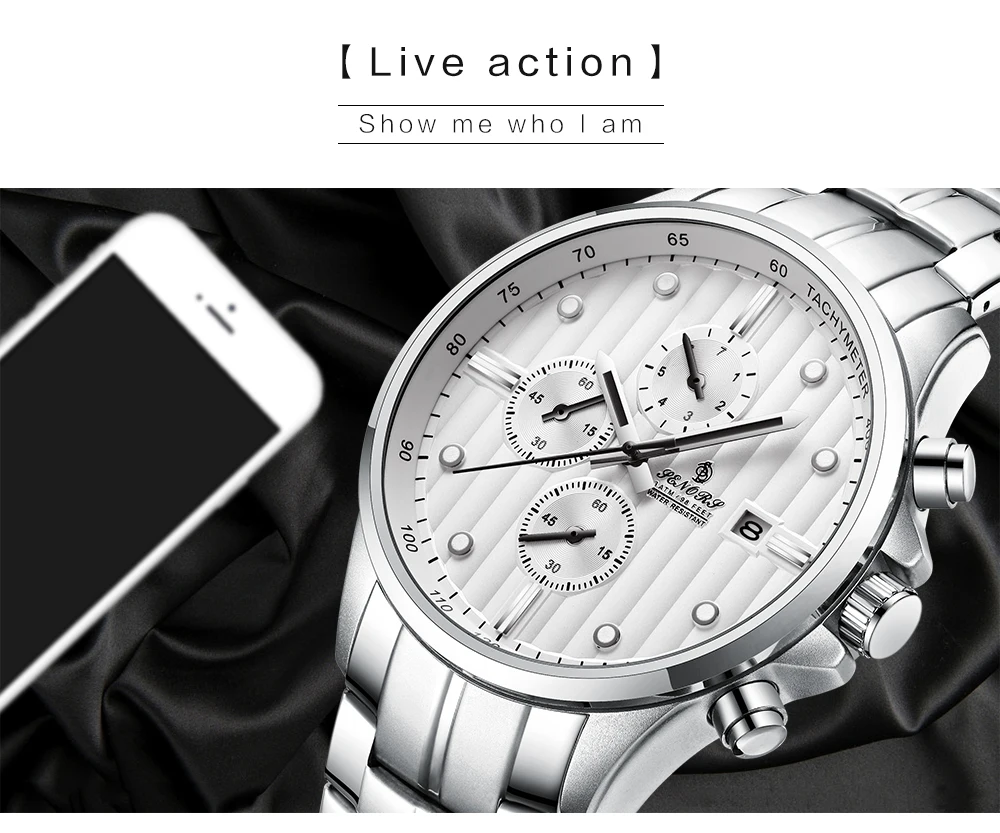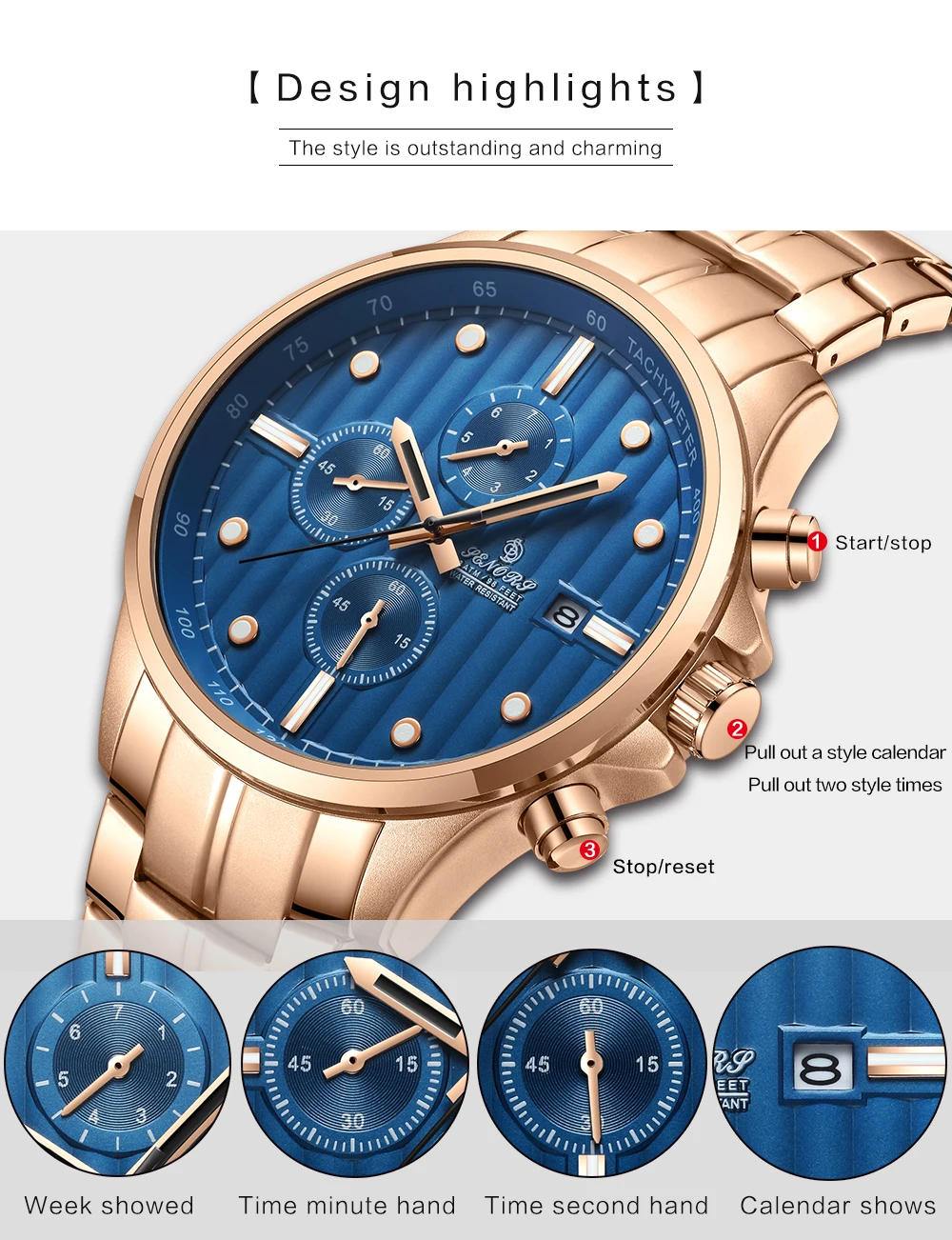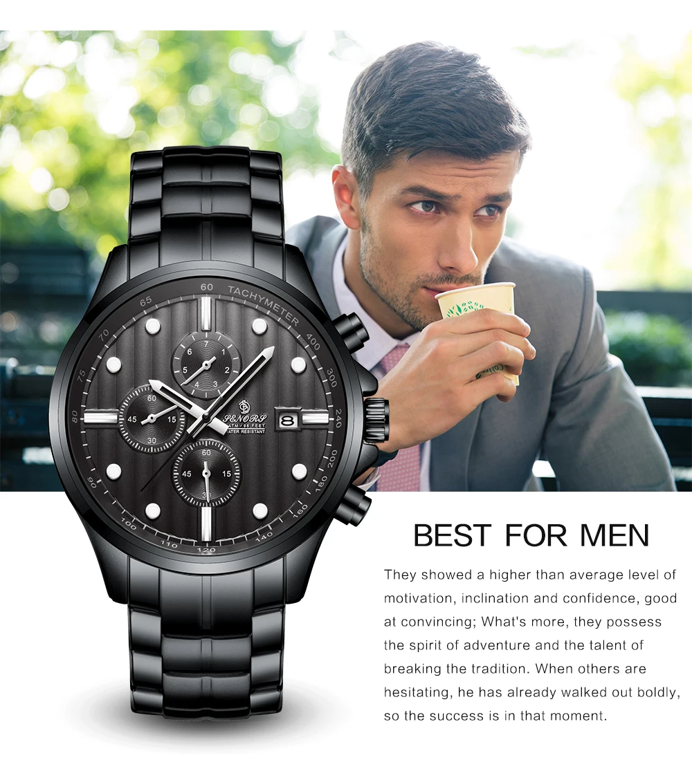 SENORS SN115 Men`s Watch Automatic Date Chronograph Quartz Watches Men Relogio Masculino Diver Watches Men 3ATM Clock