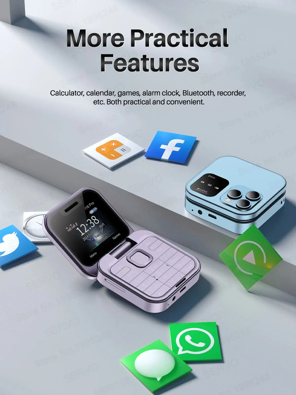 Calculator, calendar, games, alarm clock, Bluetooth, recorder, etc. Both practical and convenient.
