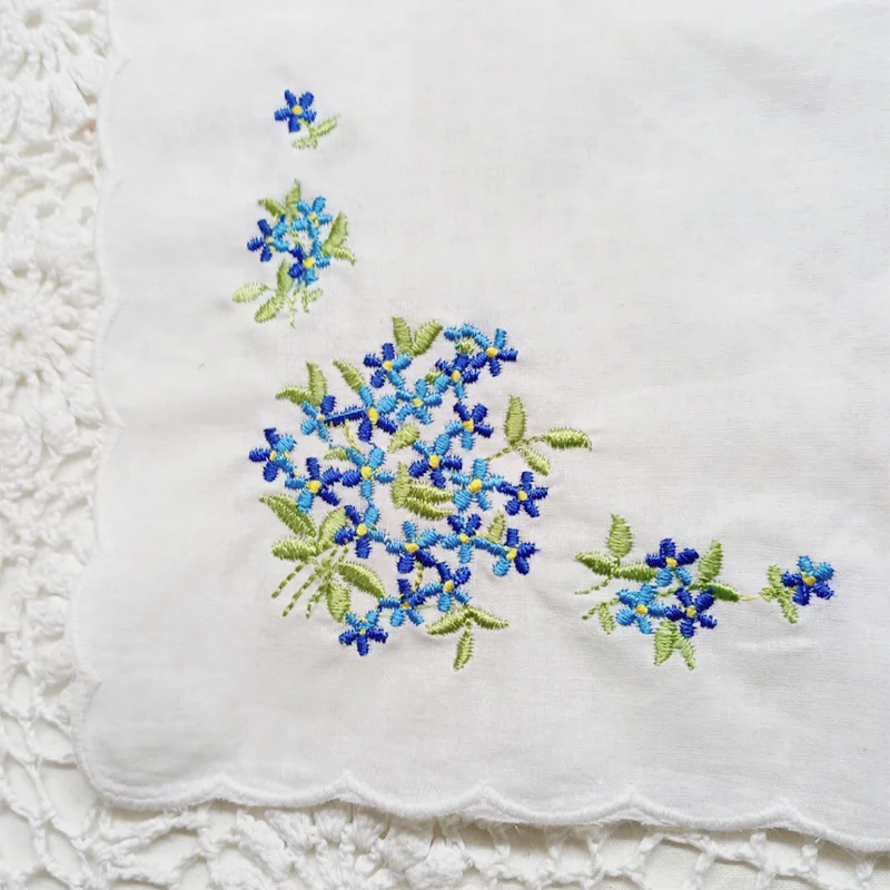 Fashion Wedding Bridal Handkerchiefs / embroidered Floral /White Cotton Hankies Scalloped Edges/ Plain Classic High Quality . Ladies Hankies.