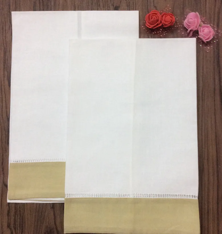 Pattern Type: White linen/ Color Taupe border 2" wide.