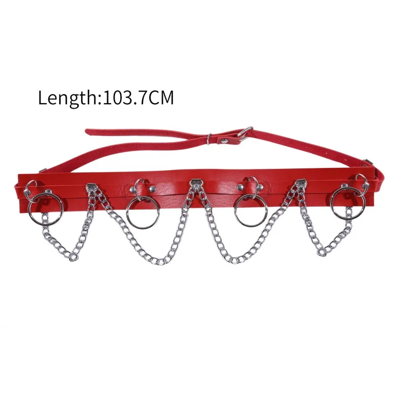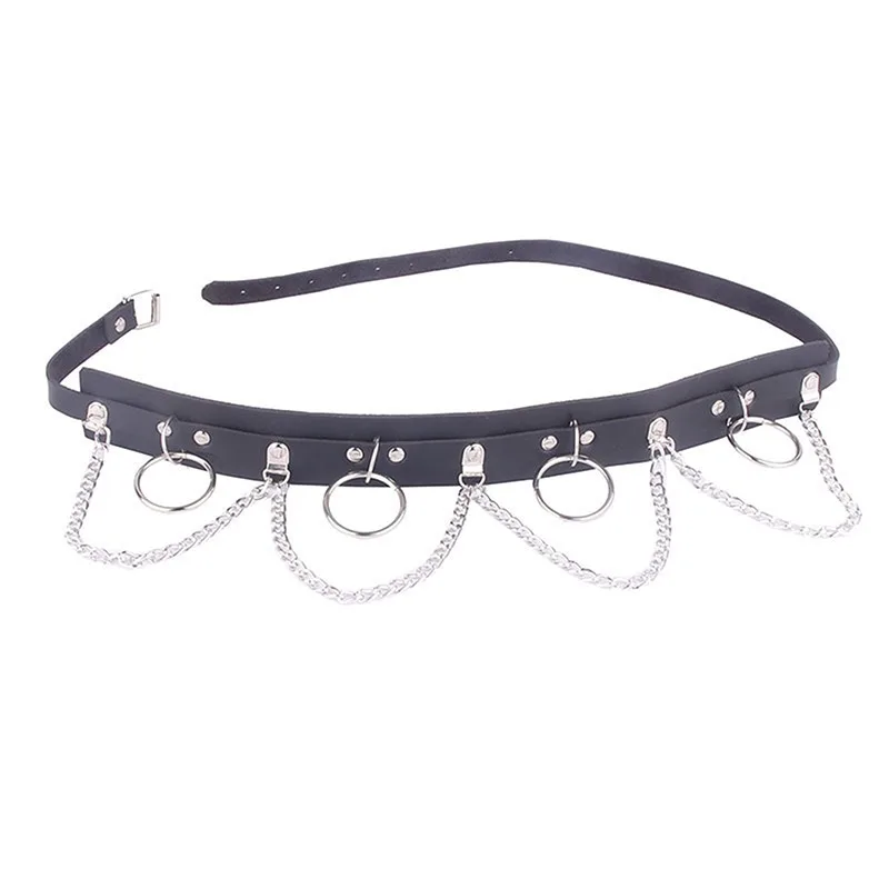 Sexy Women Gothic Hiphop Belt with Chain Harajuku Punk Style Jk Waist Adjustable Disco Dancing Pu Dress Jeans Waist Chain