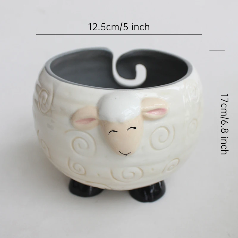 Ceramic Sheep Yarn Bowl:Resting on a table or sitting at your feet,this plump little sheep looks adorable while doing the important job of keeping your yarn clean,contained,and tangle free.Large size 17CM x 12CM ,you can take anywhere you want and complete your great weaving project
