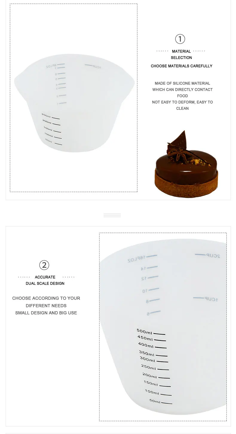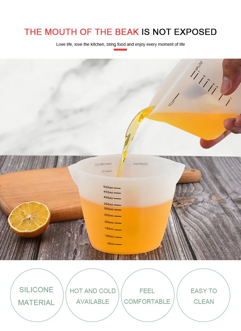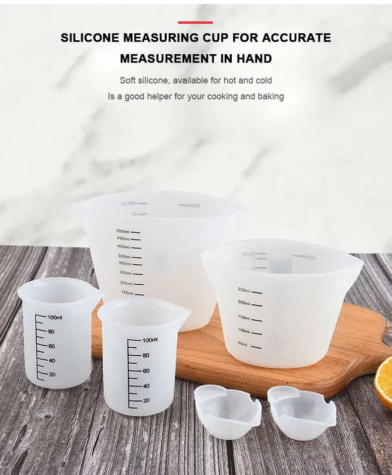• Silicone Measuring Cup With Clear Scale Food Grade Durable Non-stick DIY Cake Epoxy Resin Jewelry Making Kitchen Baking Tools