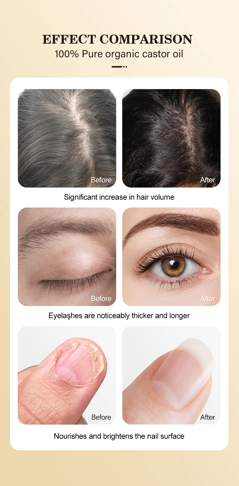 A variety of plant nutruents nourish eyelashes, black and thick, flexible and full.