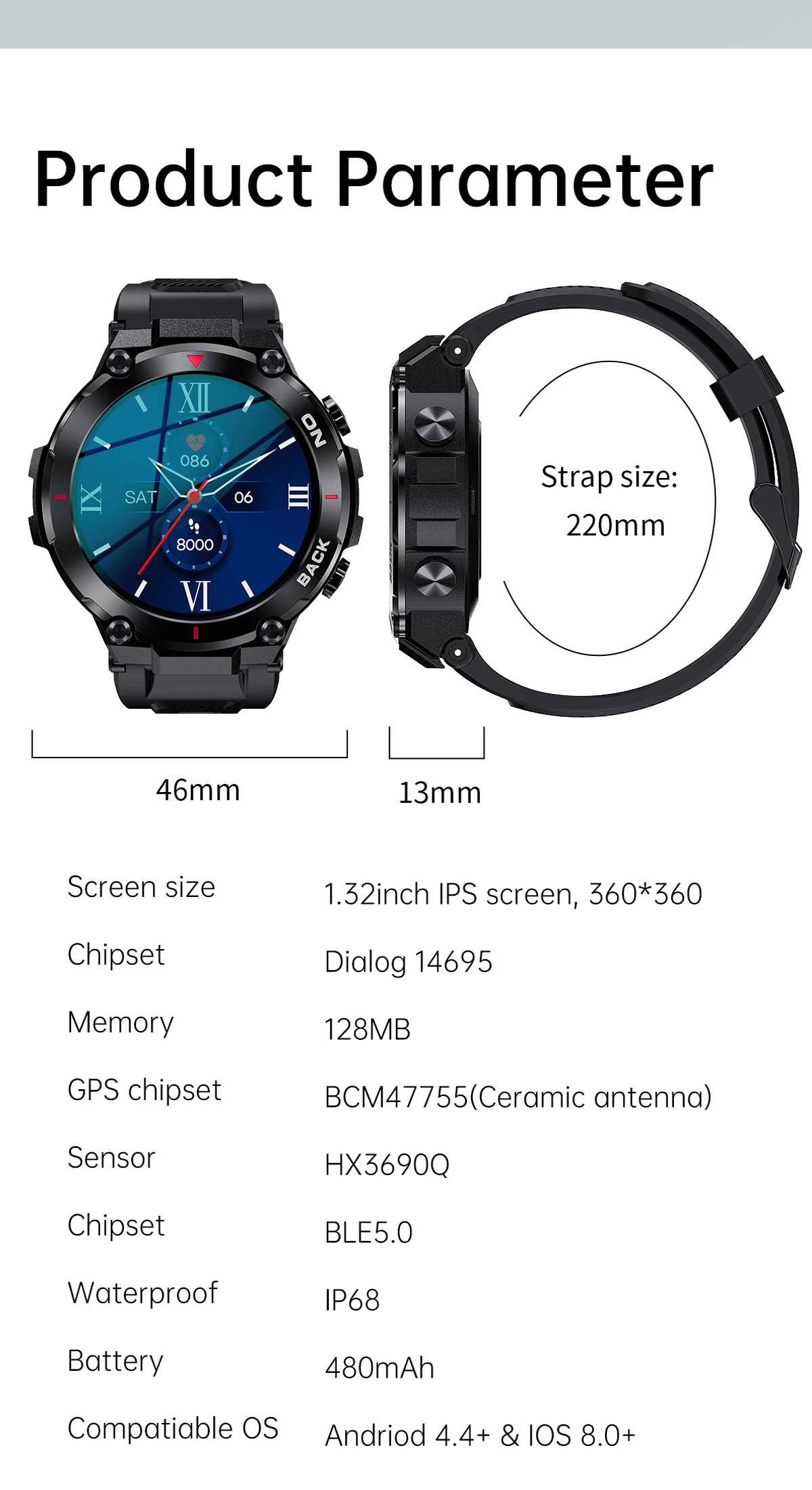 1.32 inch IPS screen 360*360 high resolution HD screen (Bright screen under sunshine)