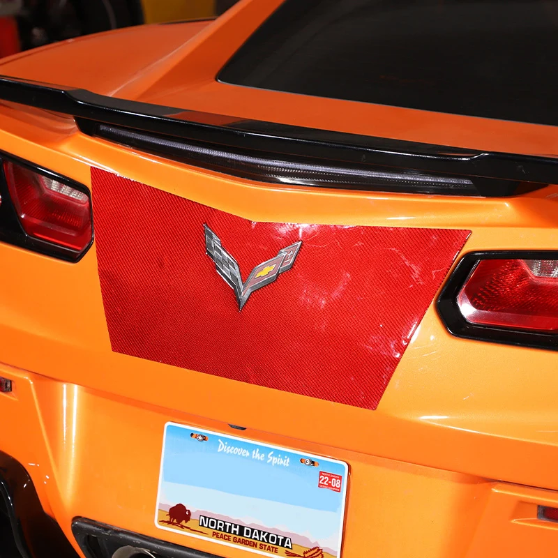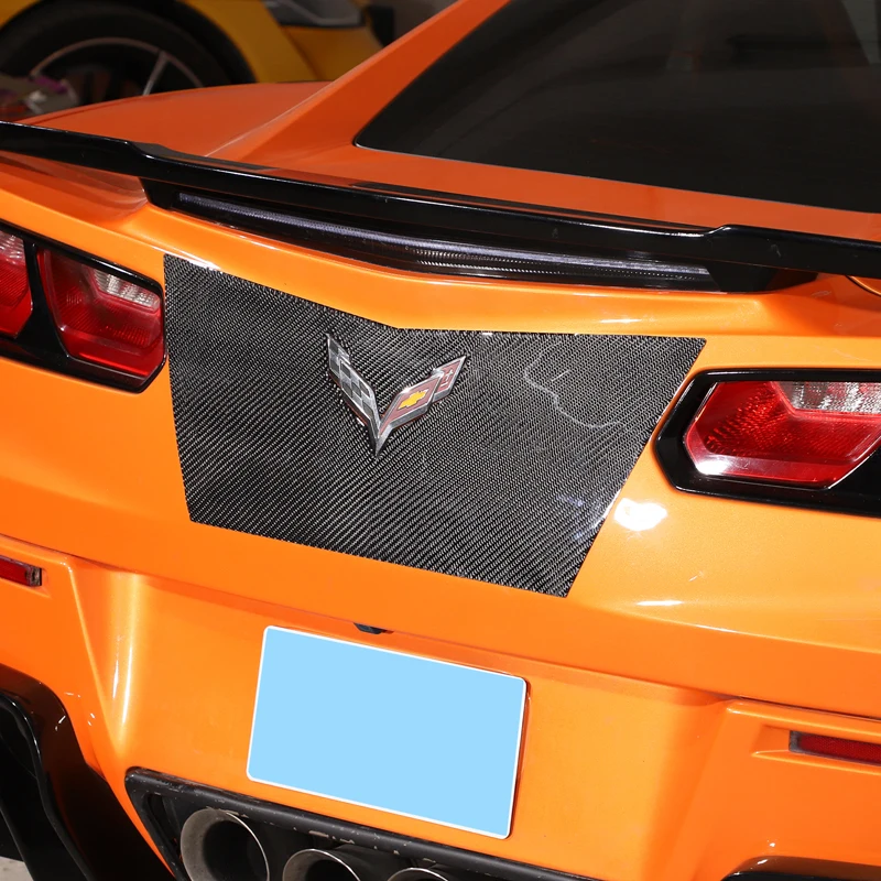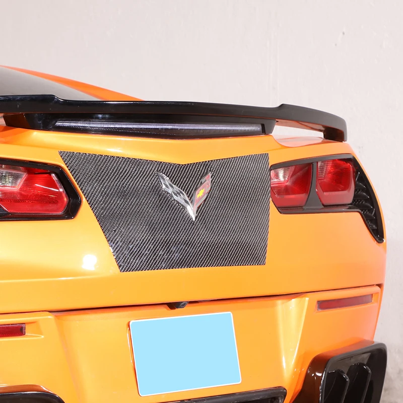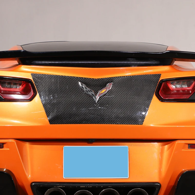 Soft Carbon Fiber Car Rear Badge Panel Cover Logo Frame Trim Sticker For Chevrolet Corvette C7 2014-2019 Car Exterior Accessorie