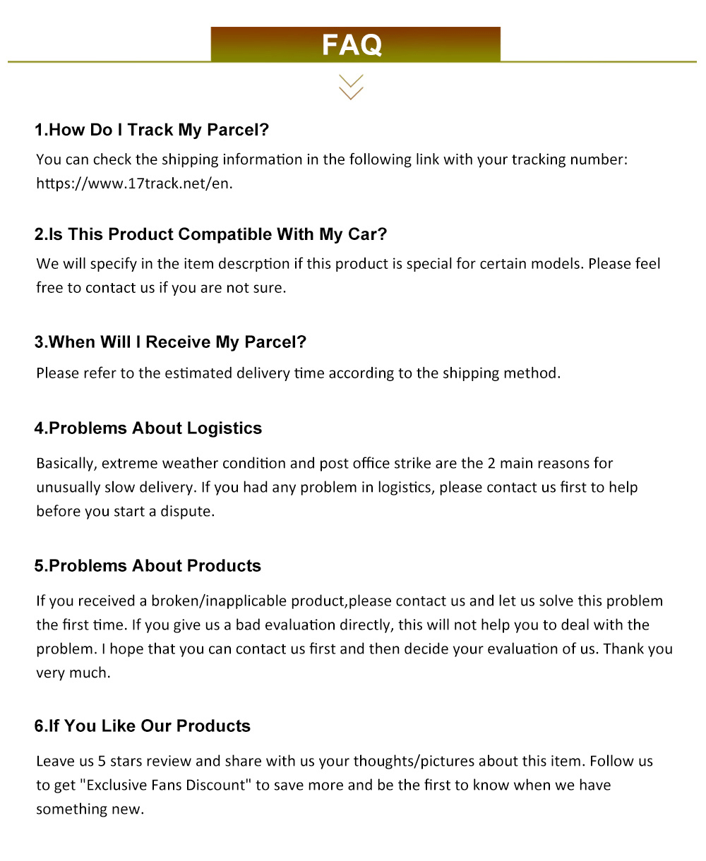 Product features: Glossy surface, Easy to install,Add a unique color,adding luxury and elegance to your car.