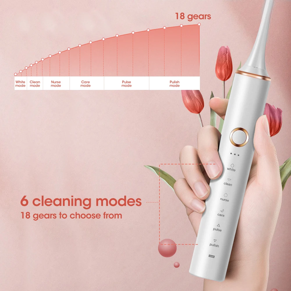 4. 6 cleaning modes, 18 gears, 2-minute intelligent timing, let you develop a good habit of scientific brushing.