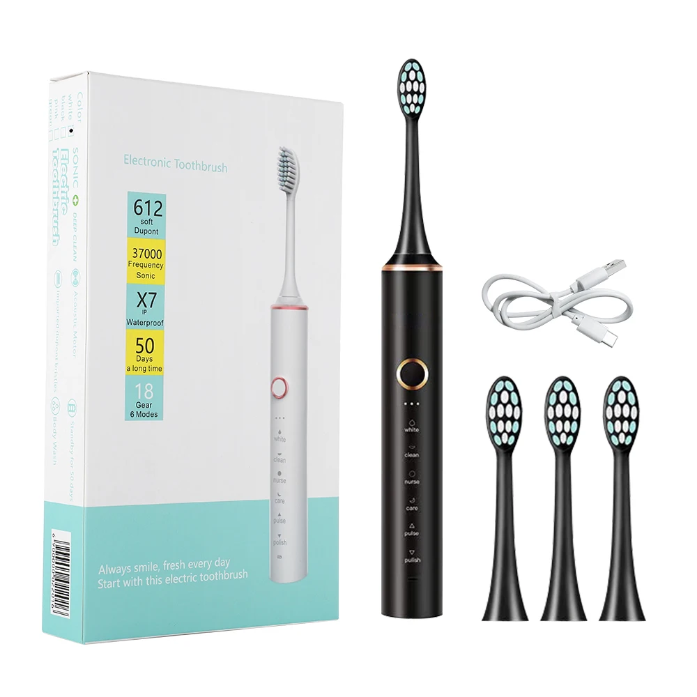 1. Imported high-frequency pulse motor, up to 31,000-40,000 times/min of sonic vibration, deeply cleans the blind area between the teeth, effectively removes plaque, and gently cares for the gums.