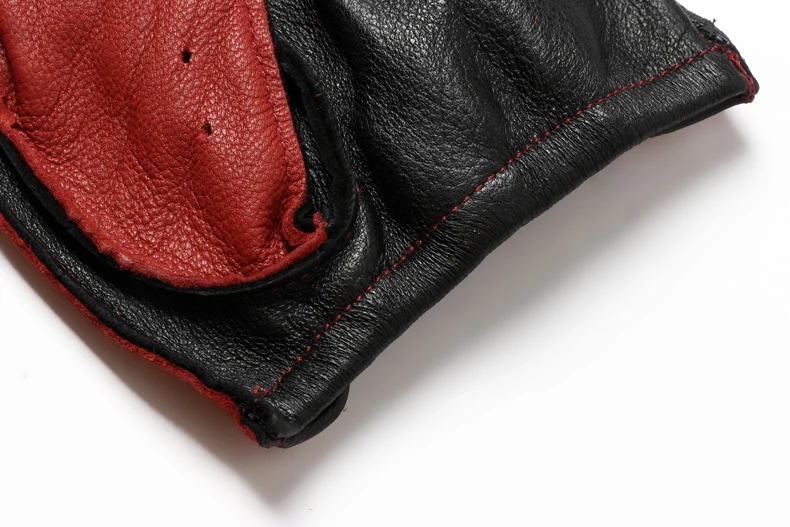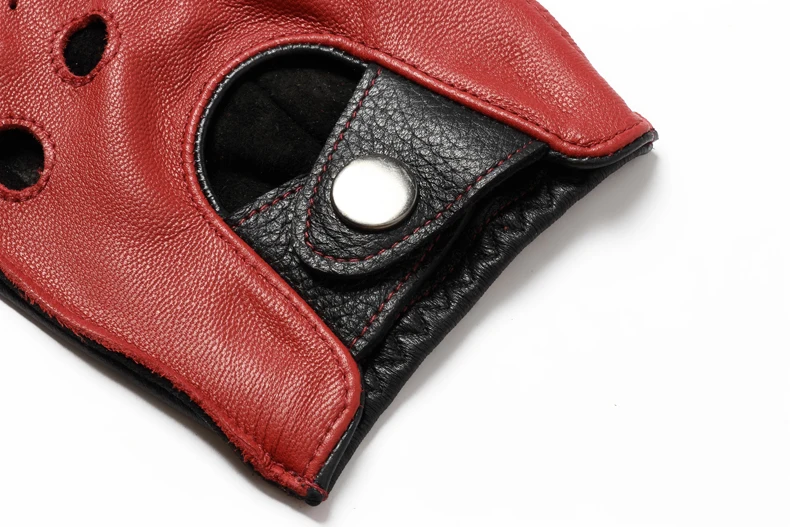 • Spring Male100% Pure Real Leather Half Finger Thin Gloves Man Genuine Sheepskin Red/Brown/Blue Driving Riding Luvas Guantes