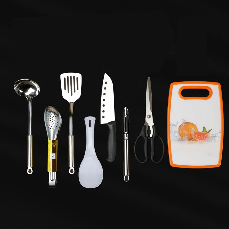 Functional: The outdoor cookware includes spoons, food tongs, chopper, scale scraper, and so on, suitable for family use.