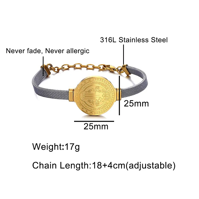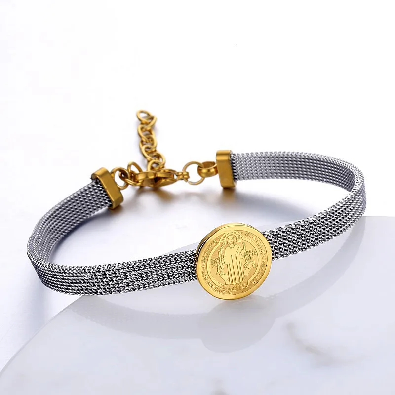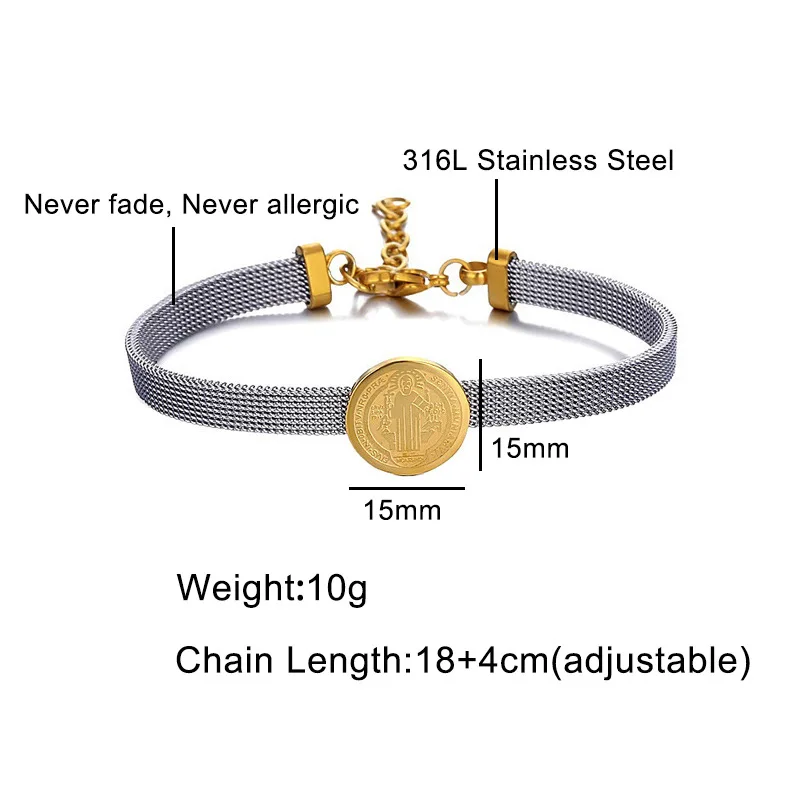 Choose Options Quick view Stainless Steel St Benedict Medal Bracelet Metal San Benito For Women Bracelet Adjustable Band Chain Religion Jewelry Gift $16.00