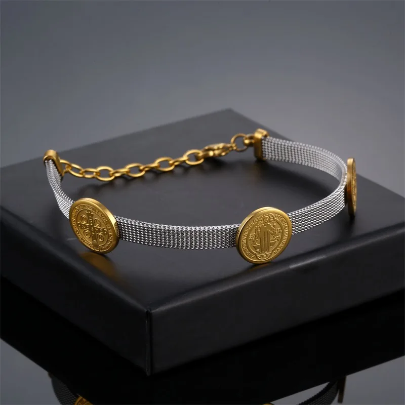 Choose Options Quick view Stainless Steel St Benedict Medal Bracelet Metal San Benito For Women Bracelet Adjustable Band Chain Religion Jewelry Gift $19.40