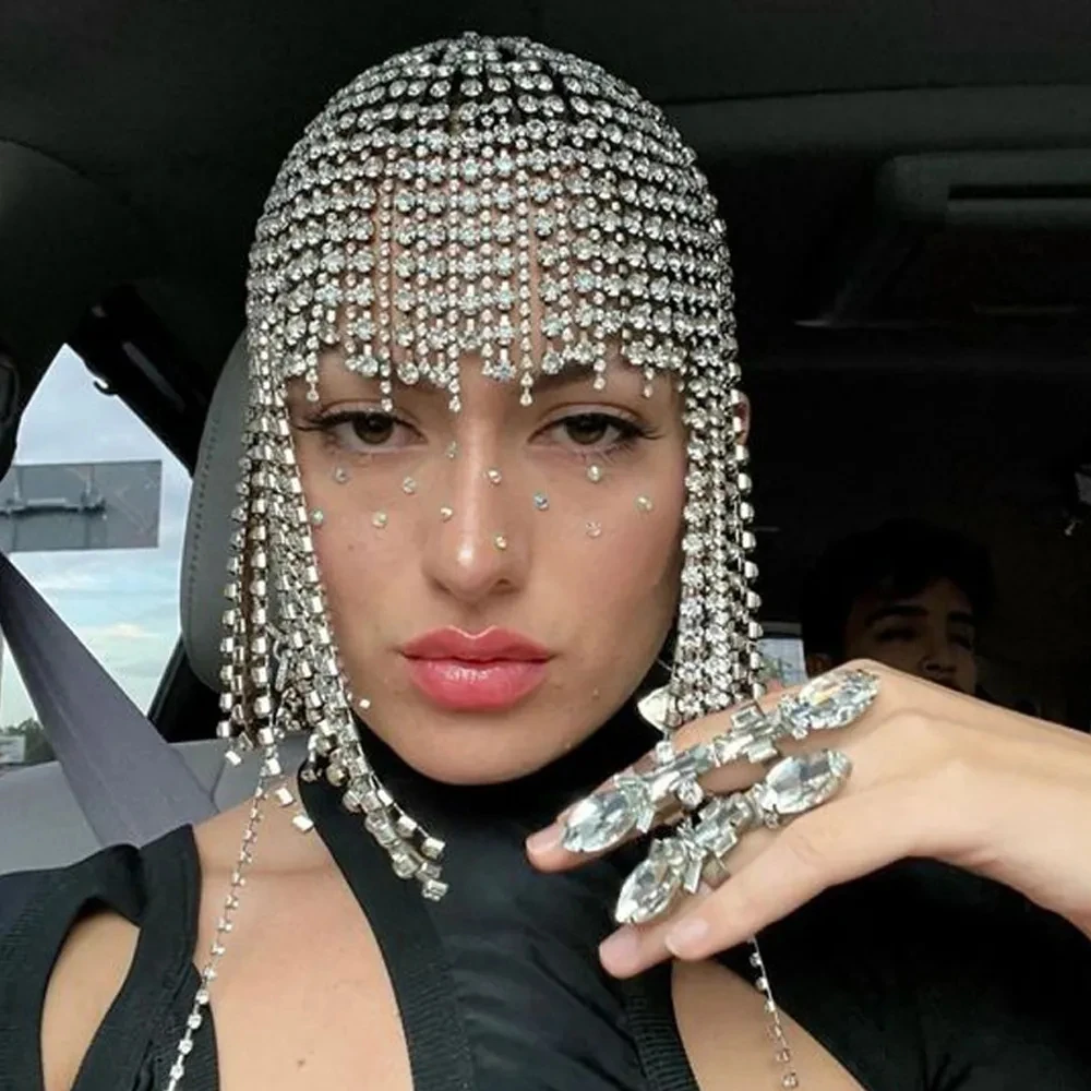 Choose Options Quick view Gorgeous Long Tassel Headpiece Rhinestone Hair Chain Headband Bling Bridal Hat Women Crystal Hollow Head Chain Jewelry $26.06 - $26.24