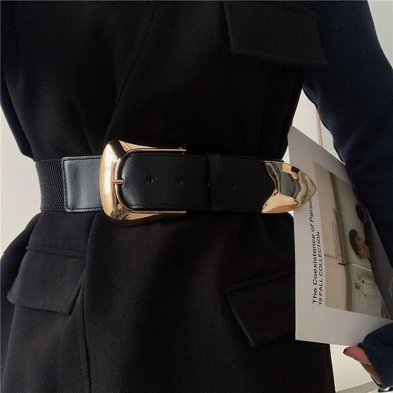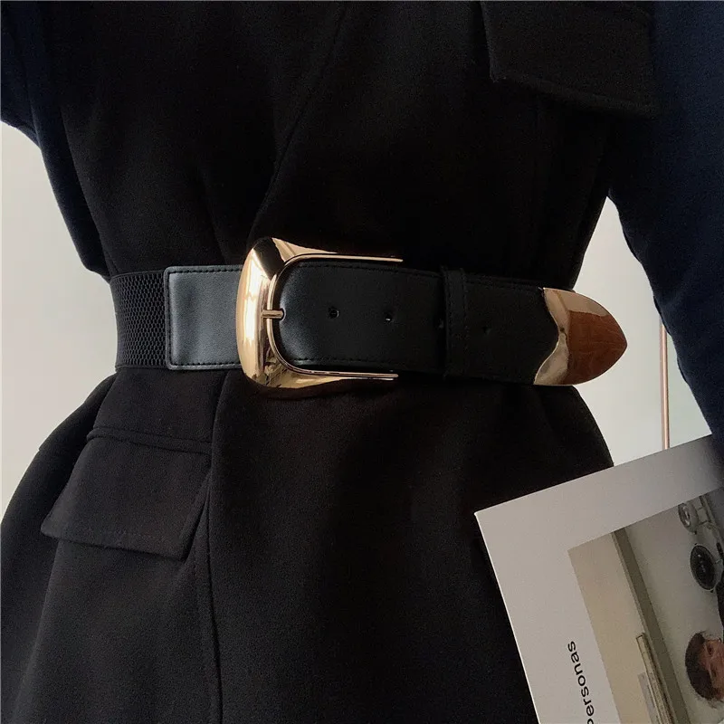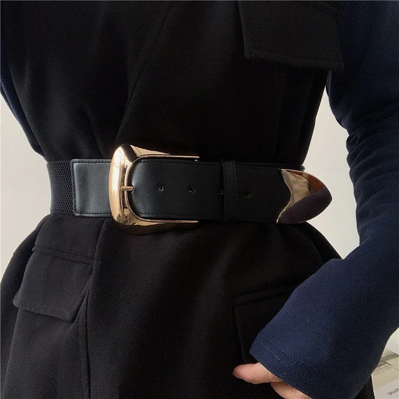 Choose Options Quick view Women Fashion Luxury Big Buckle PU Leather Wide Waistband Cummerbunds for Ladies Dress Sweater Stretchy Belts Elastic Waist Belt $48.53 - $48.92 Product name: Women Wide WaistbandMaterial: PU LeatherSize: 65cm*6cmColor: black,red,whitePackage include: 1pc