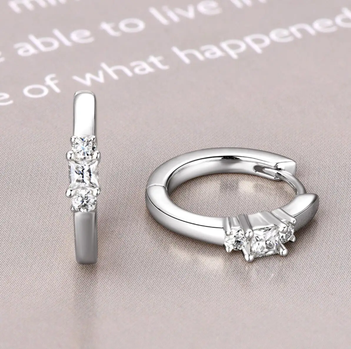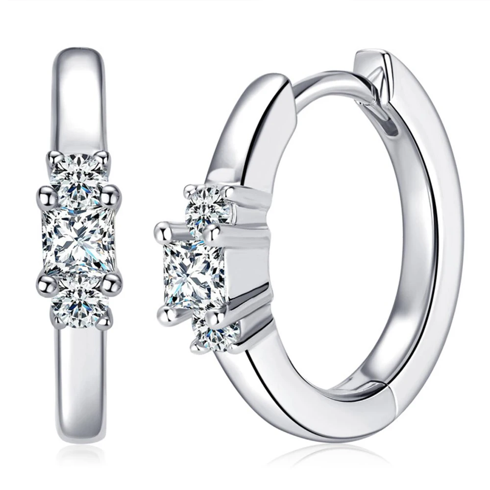 Sweetrain 2.5mm Moissanite Earrings for Women Original Certified 925 Sterling Silver Plated Gold Hoop Earring Fine Jewelry Gift