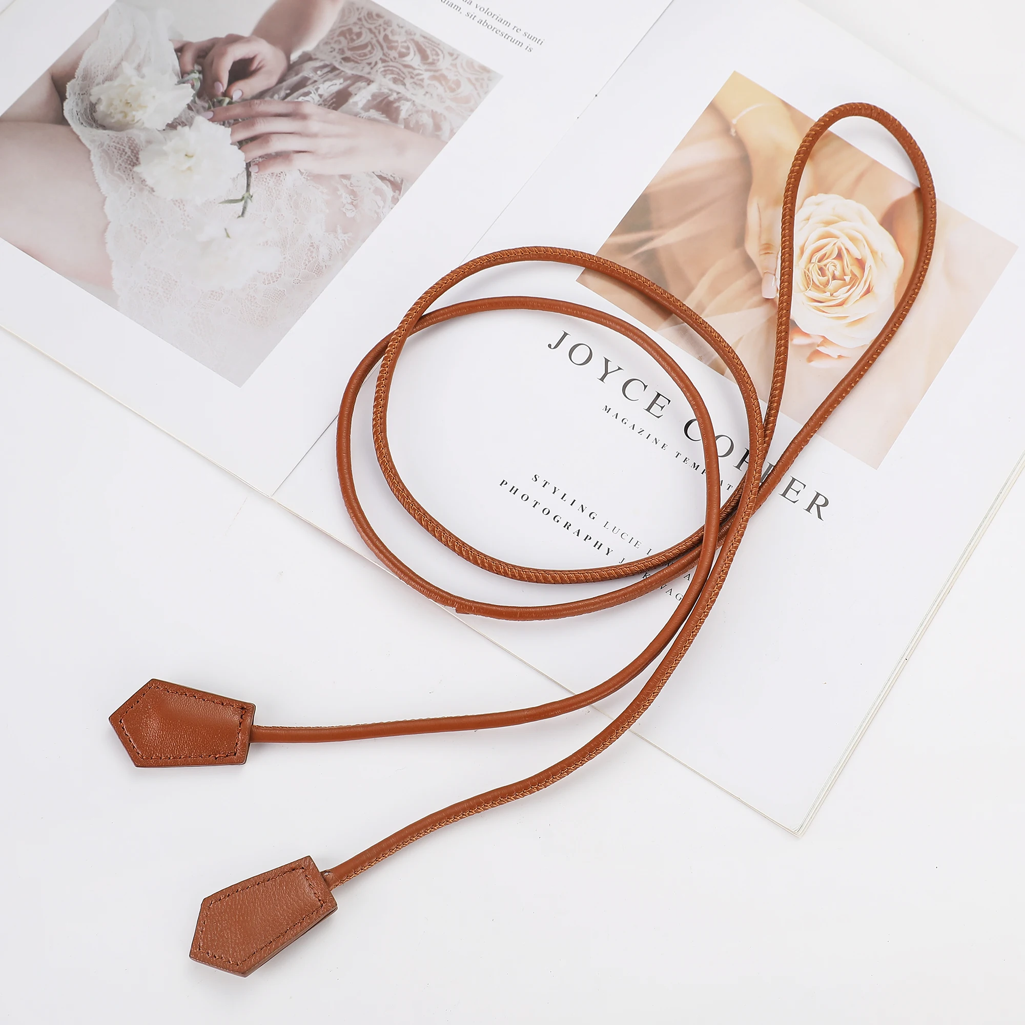 Thin Sheepskin Long Waist Belts Women‘s Dress Coat Decorative Knotted Waist Rope Elegant Designer Slim Waist Chain DIY Waistband