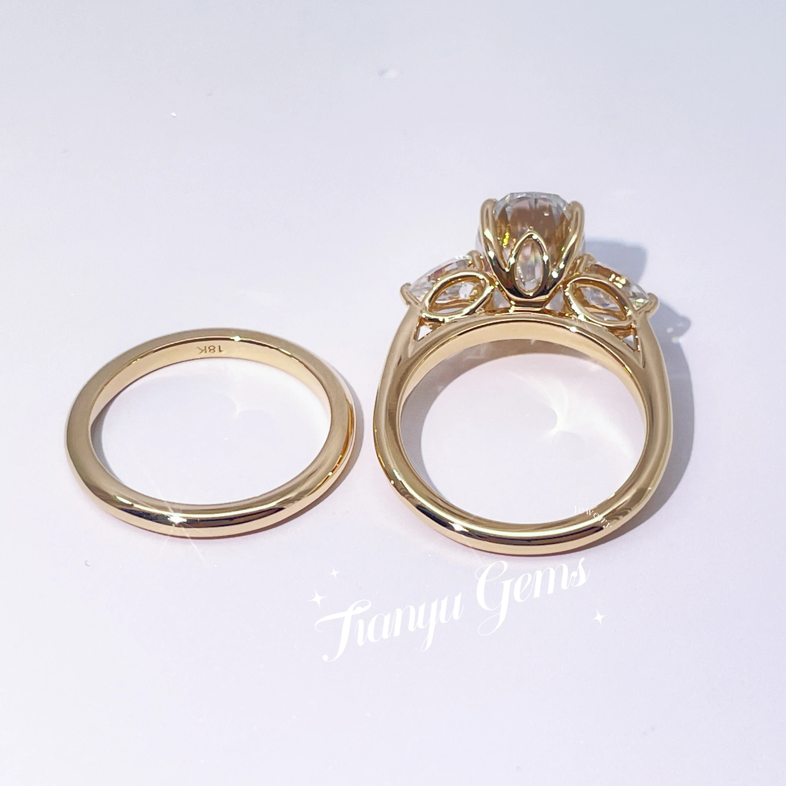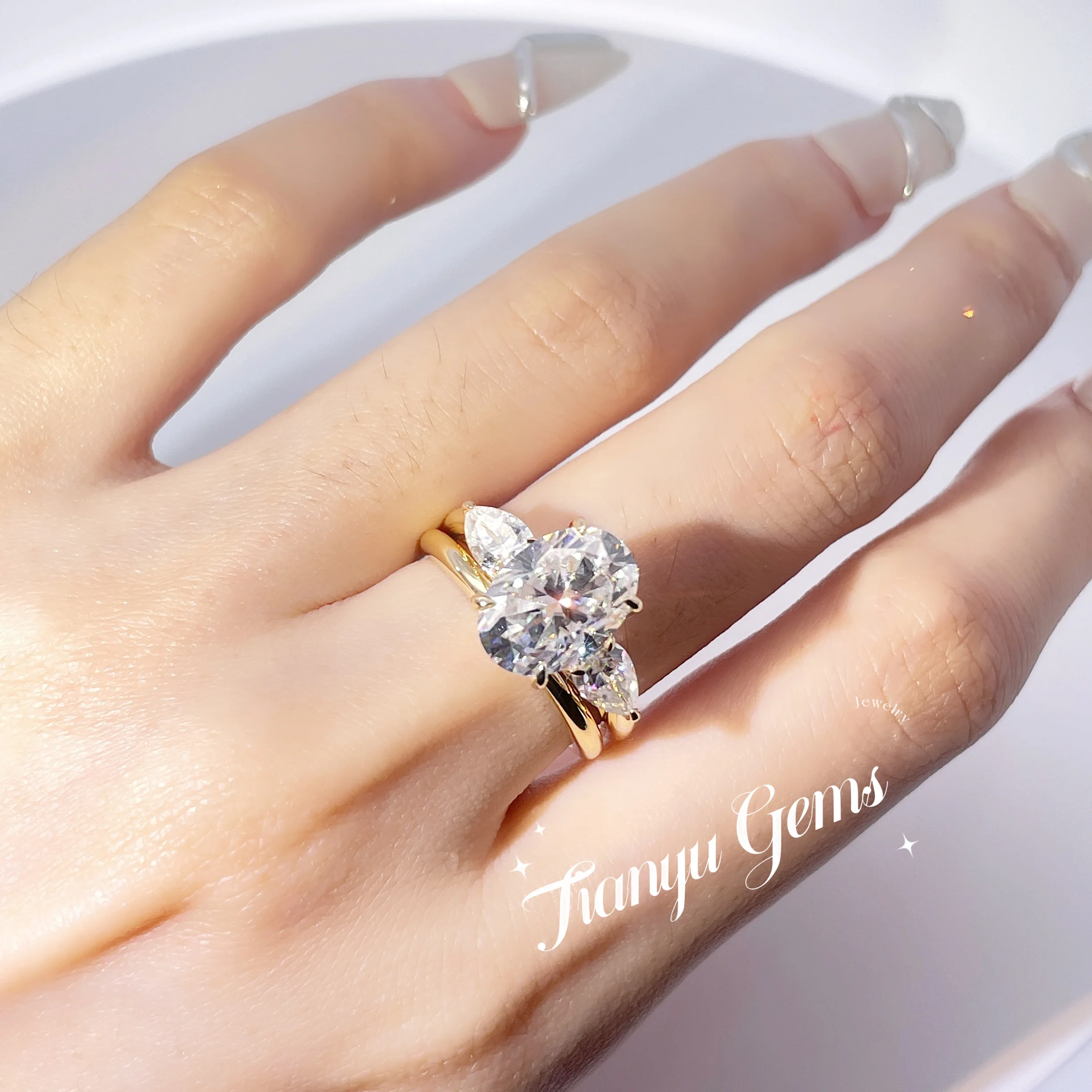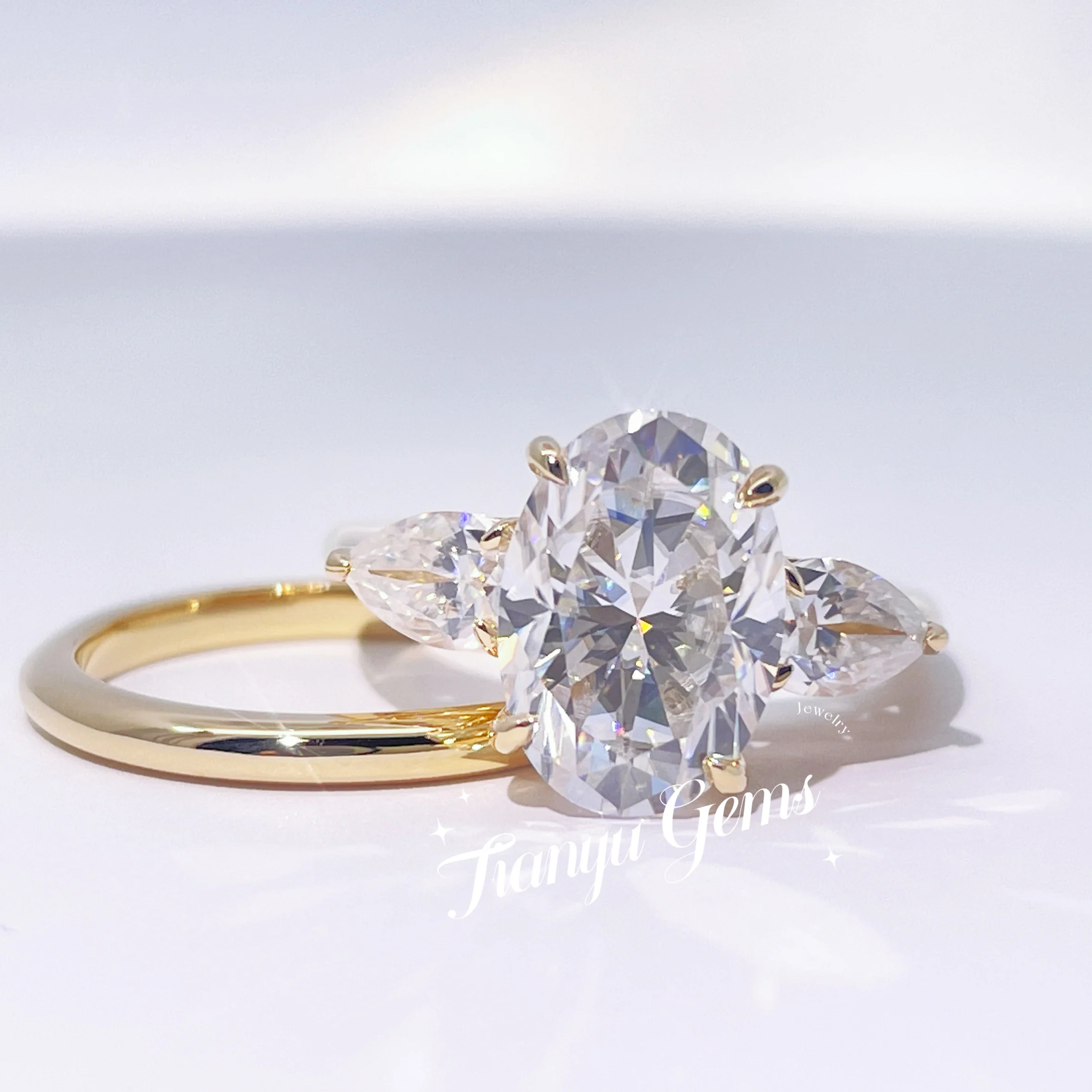 Tianyu Gems 8×11.5mm Oval H&A Moissanite Ring Set 18k 14K 10K Yellow Gold 3 Stone Rings Women Wedding Bridal Custom Fine Jewelry
