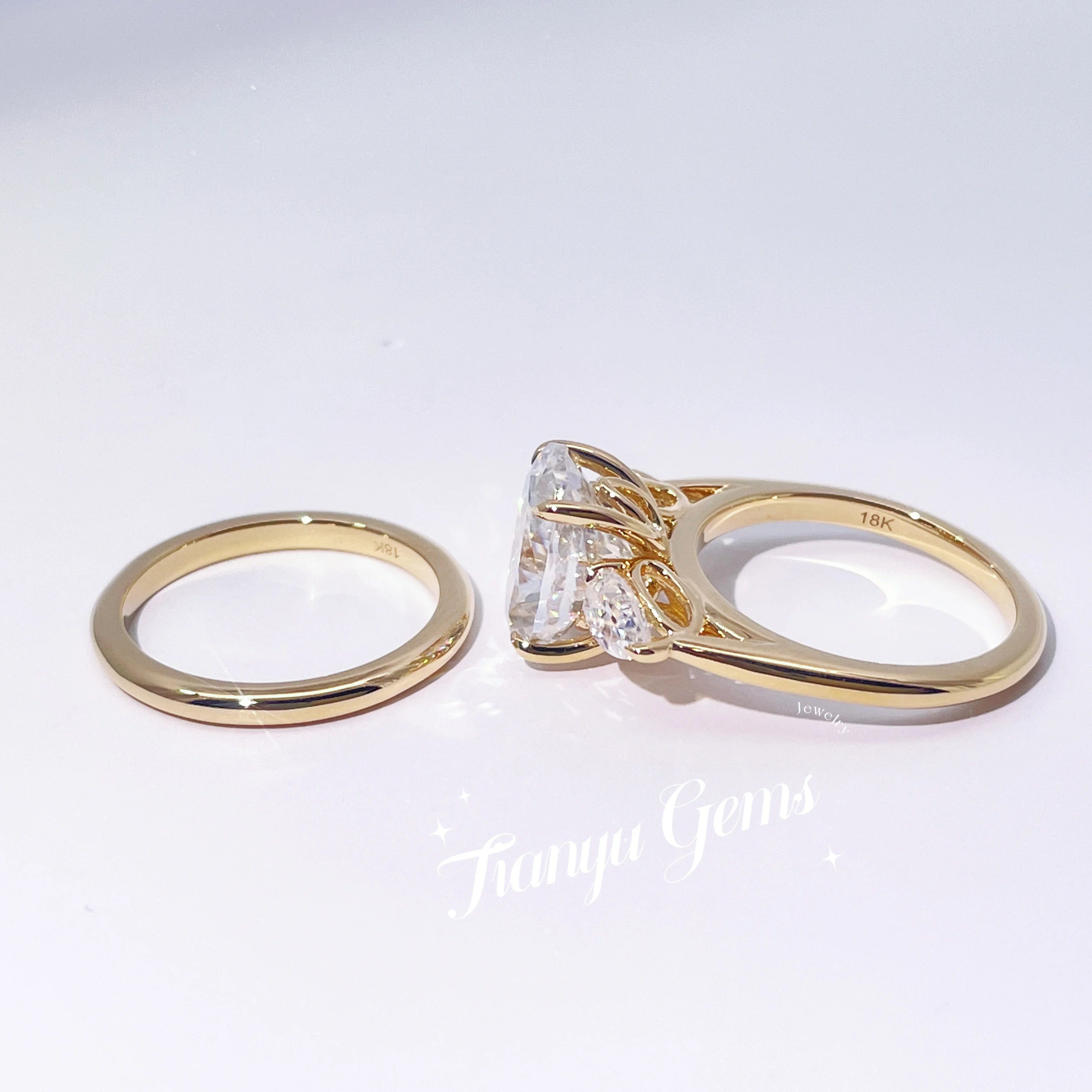 • Tianyu Gems 8×11.5mm Oval H&A Moissanite Ring Set 18k 14K 10K Yellow Gold 3 Stone Rings Women Wedding Bridal Custom Fine Jewelry