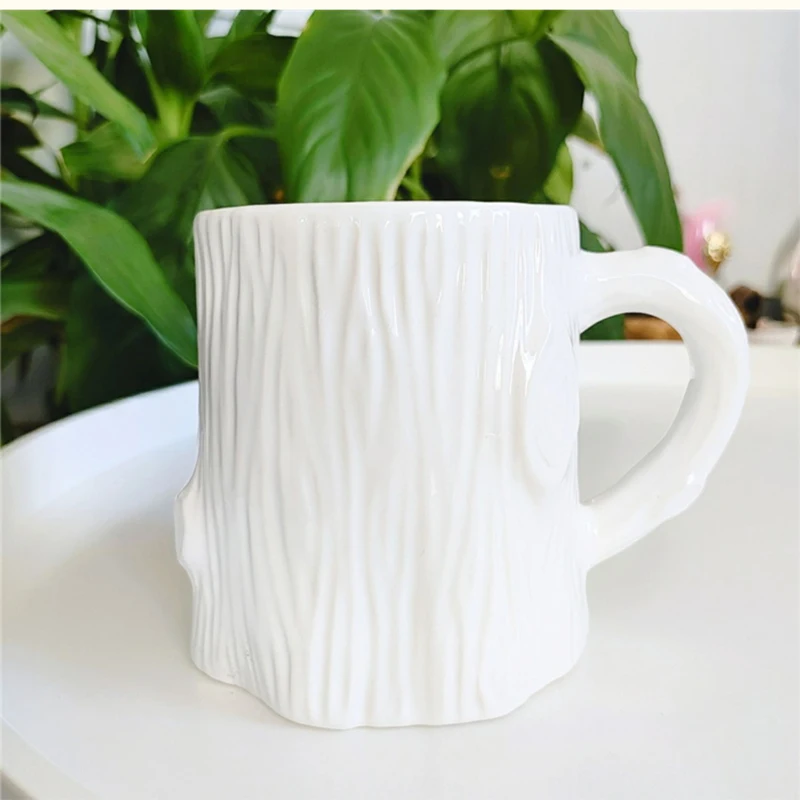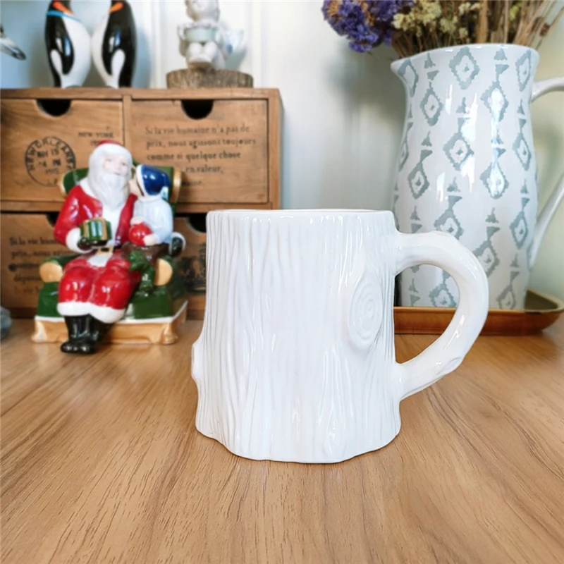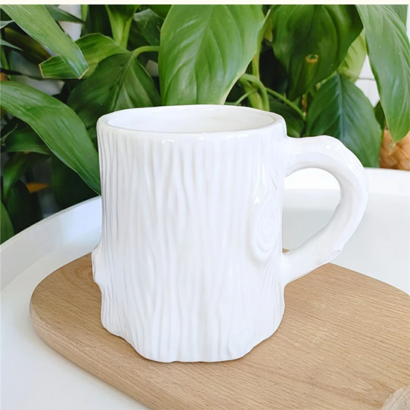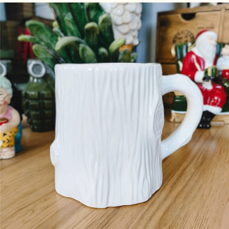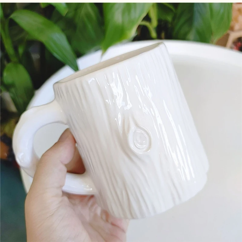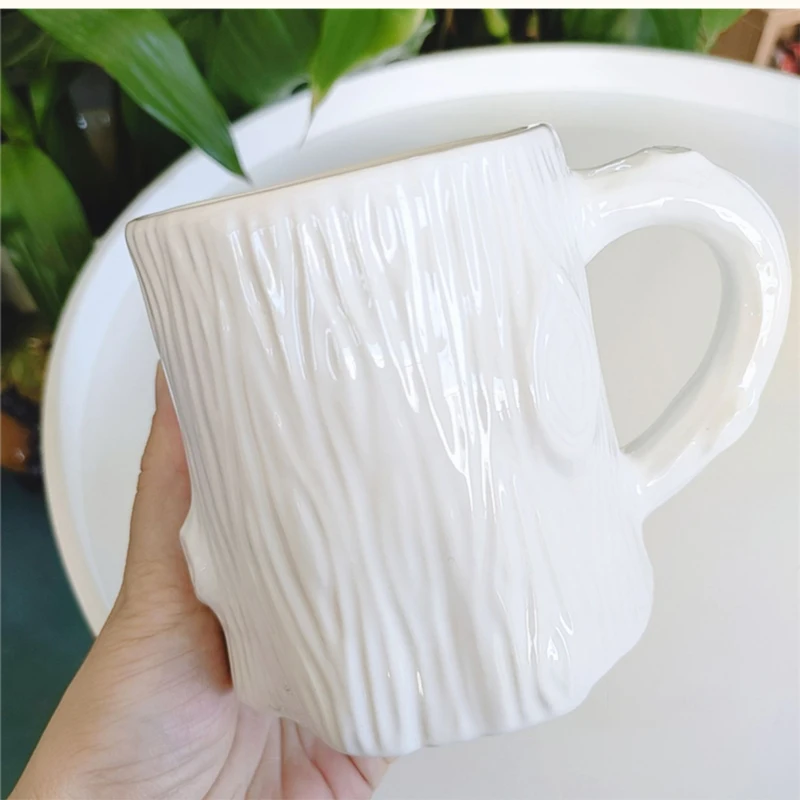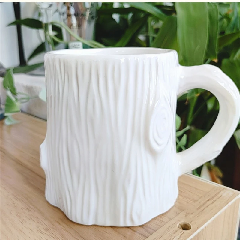 TingKe Nordic style creative tree stump shape ceramic mug creative household tree stump ceramic breakfast cup coffee cup drinkware