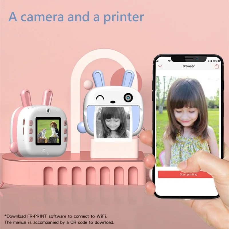 Connect the camera to mobile phone, instant print the photos from the mobile phone,it is a camera also a printer