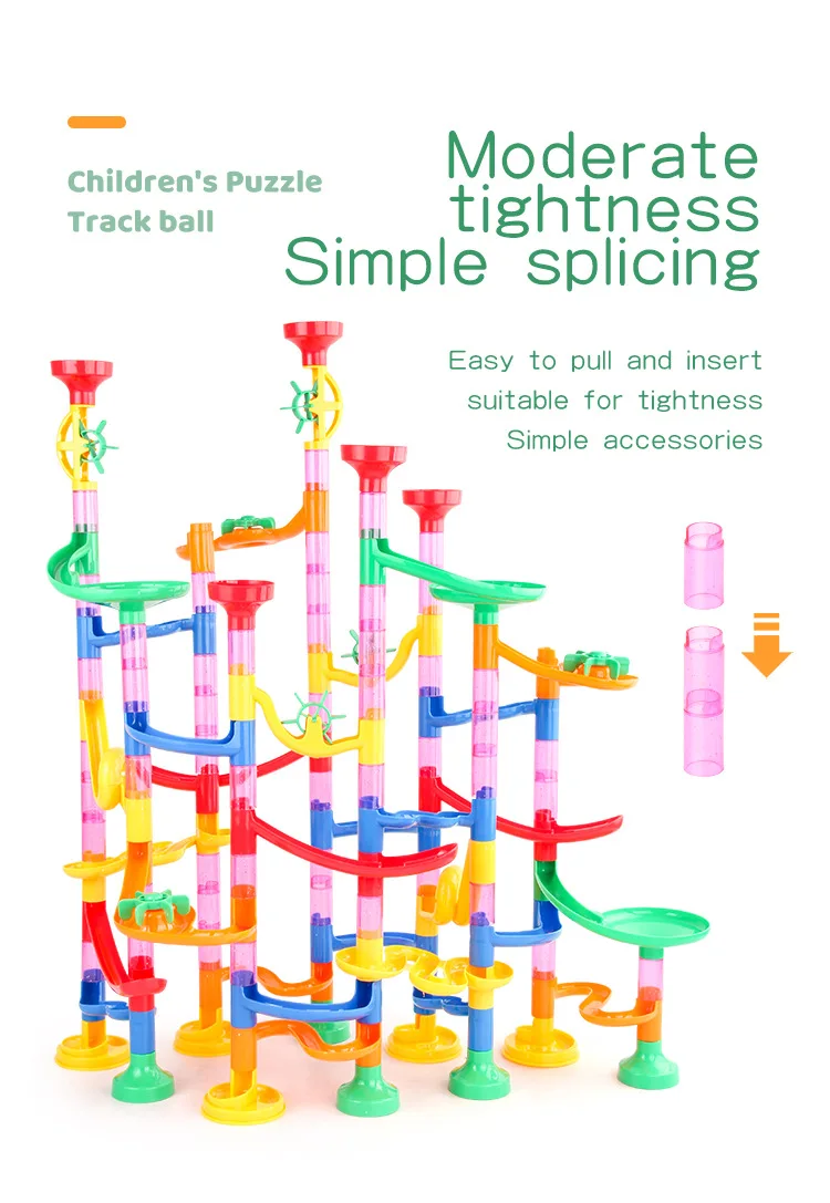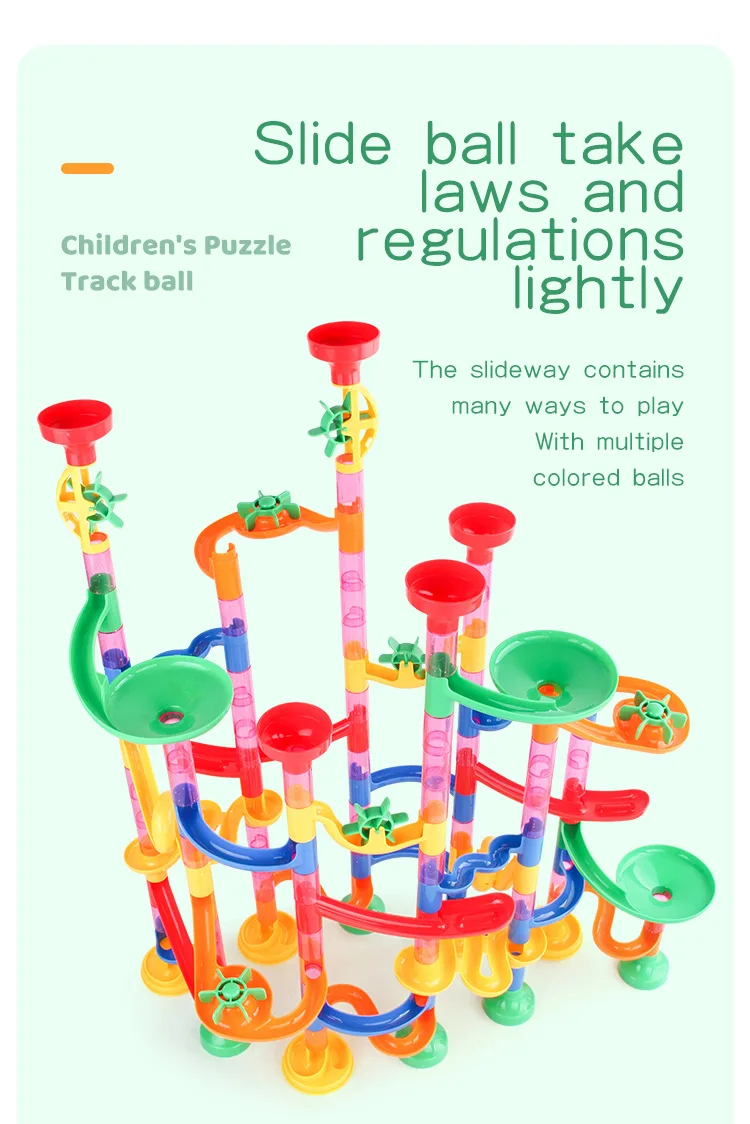 This marble race toy is a blast! The 109 /133 trace building blocks are a good educational toy for your family. The marble race track is a great article to teach children about the momentum and properties of gravity through marble running on the track. You can assemble them as you want, so you can let your children build the blocks differently each time with their imagination. This is a great game for your family.