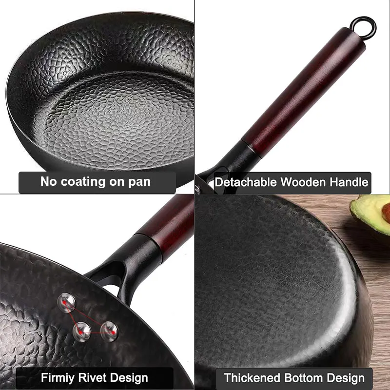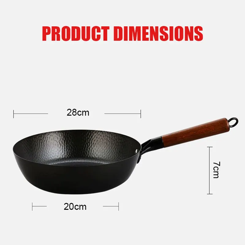 Stir Fry Pan With Wooden Handle Lightweight Cast Iron chef's pan pre-seasoned nonstick for Chinese Japanese and other cooking