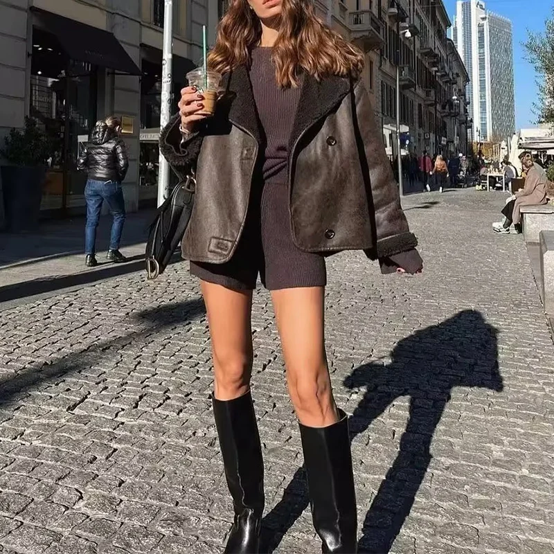 Choose Options Quick view Women New Fashion Thick Warm Heavy Industry Fur Faux Leather Jacket Coat Vintage Long Sleeve Zipper Female Outerwear Chic Tops $117.32
