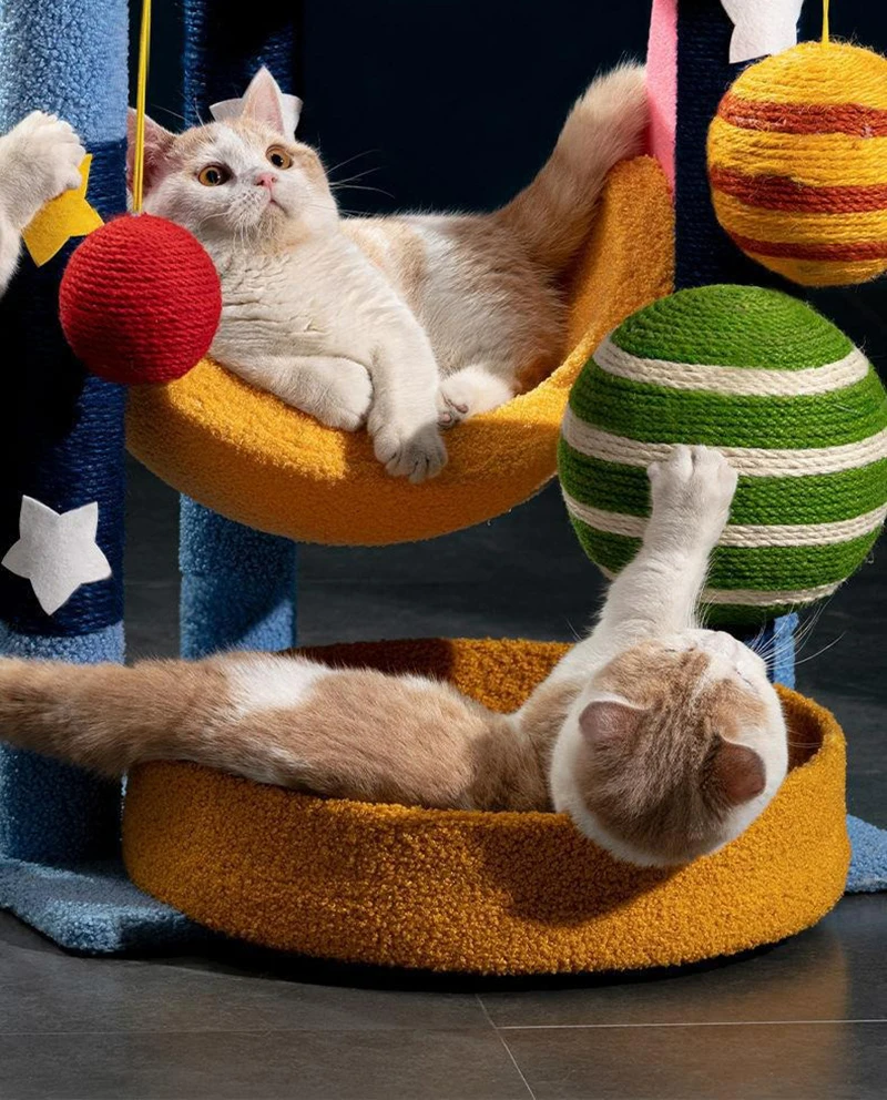 The 51'' multiple level cat tree is constructed of harmless particle board, skin-friendly plush and natural sisal rope, providing your pets a safe and comfy playing and napping space. Multiple...