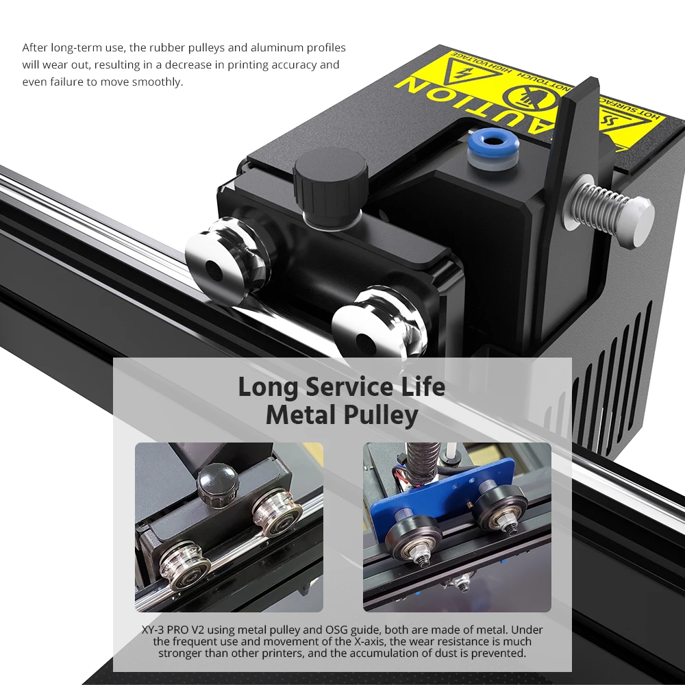 -The guide rail + pulley design makes the X axis more accurate, stable and wear-resistant.