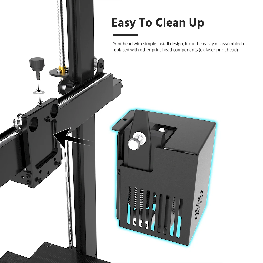 The detachable print head, more asier to clean up, more convenient to switch 3D print and laser engraving