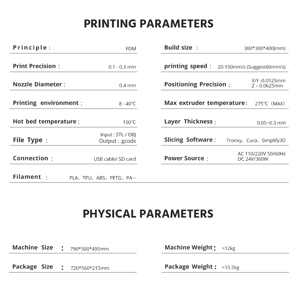 Tronxy XY-3 PRO V2 300*300*400mm detachable BMG direct Extruder open source Silent Mainboard 3D Printer