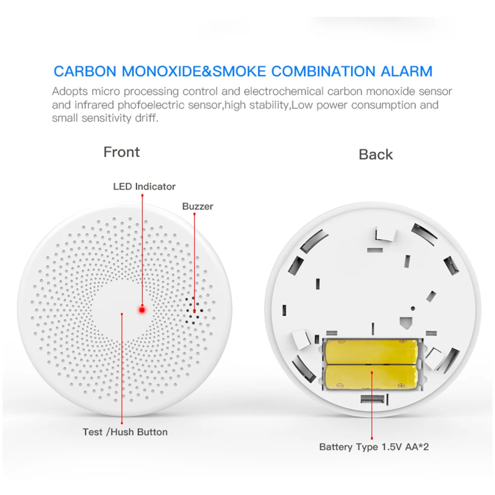 Tuya WIFI Smoke Detector Carbon Monoxide CO Gas Fire Alarm 2 in 1Smoke Sensor Home Security System Protection Firefighters