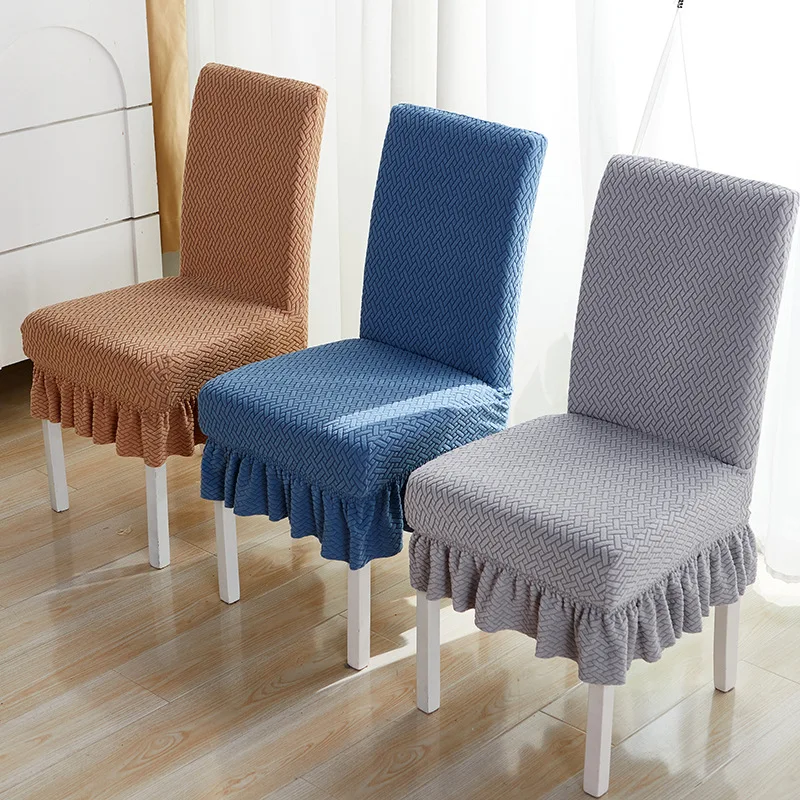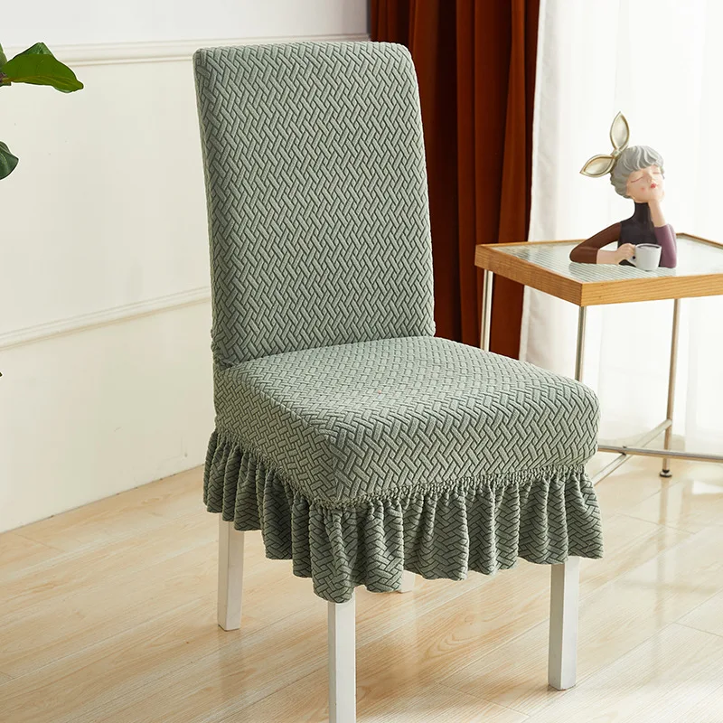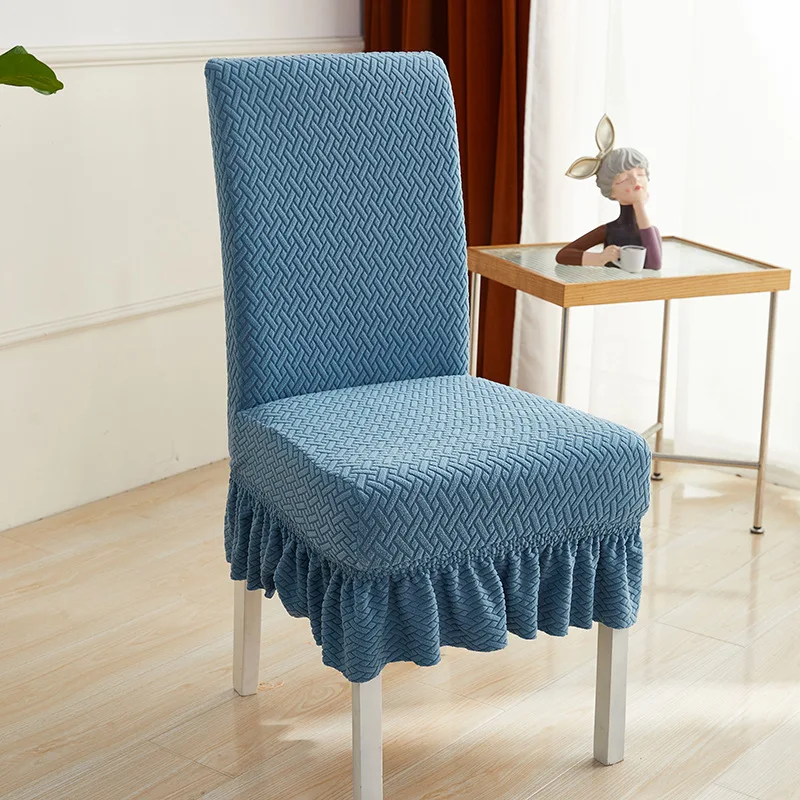 Our skirt style jacquard fabric chair cover will be the perfect protection and decoration for your chairs at home.